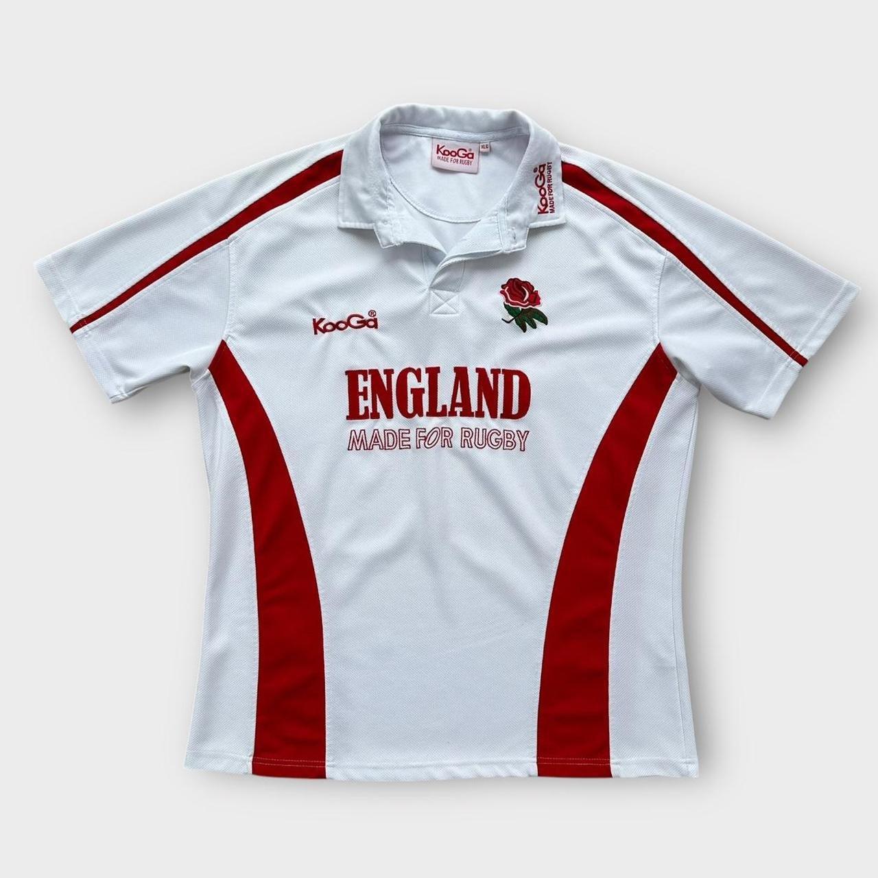 Camisa vintage de rugby da Inglaterra da KooGa com logotipos bordados e escritos no peito