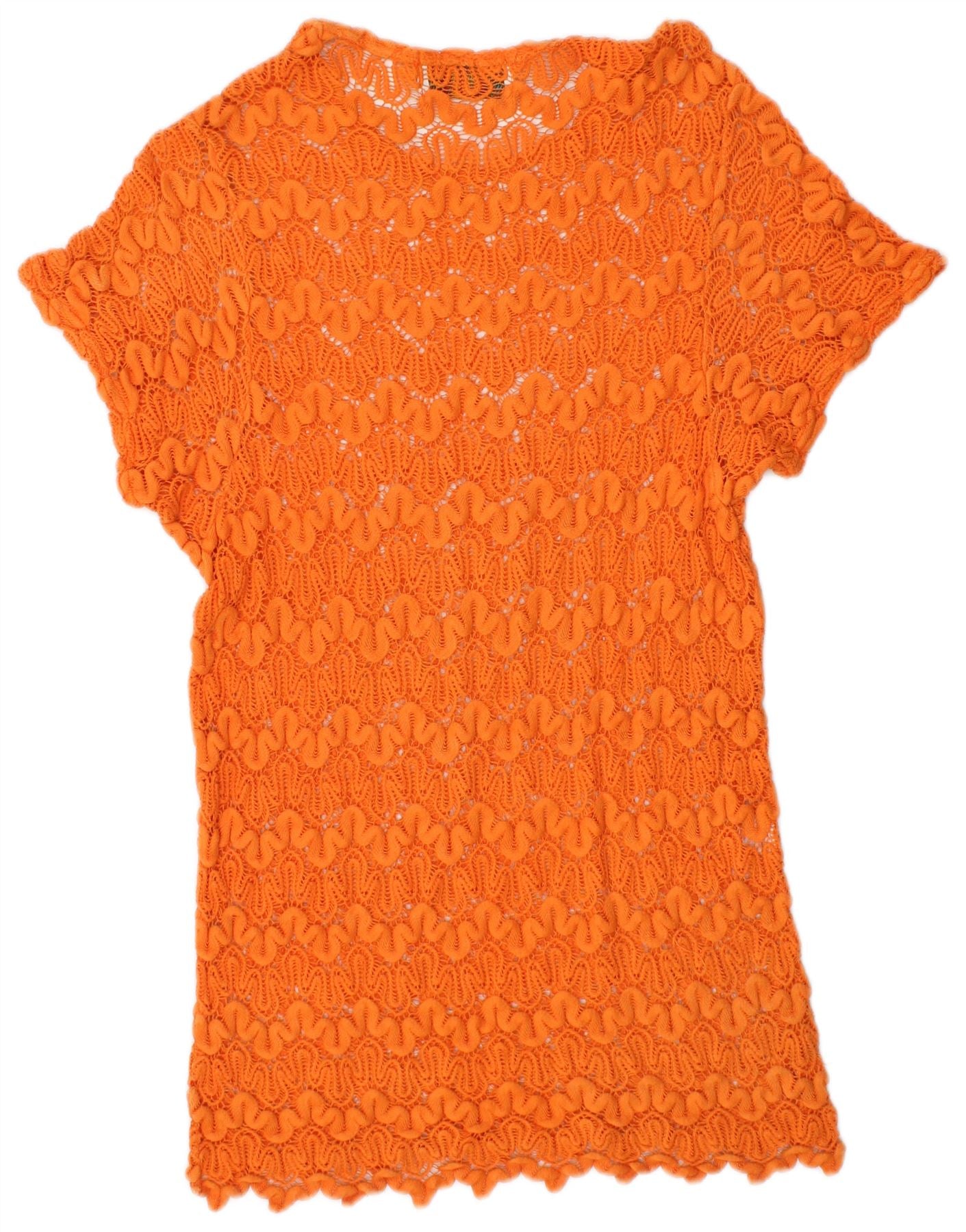 Vestido túnica transparente de crochê VINTAGE para meninas de 11 a 12 anos grande laranja