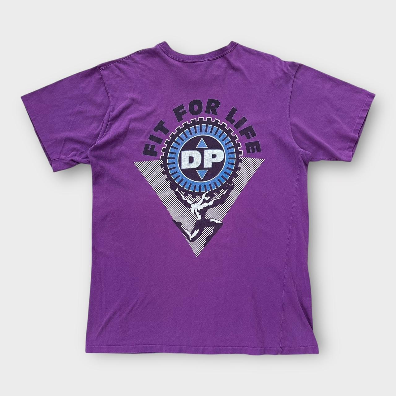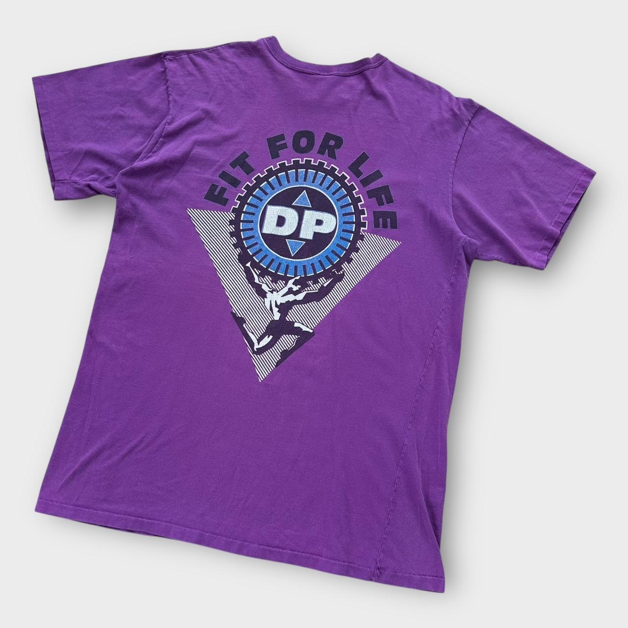 Camiseta vintage feita nos EUA Fit for life com estampa roxa de ponto único