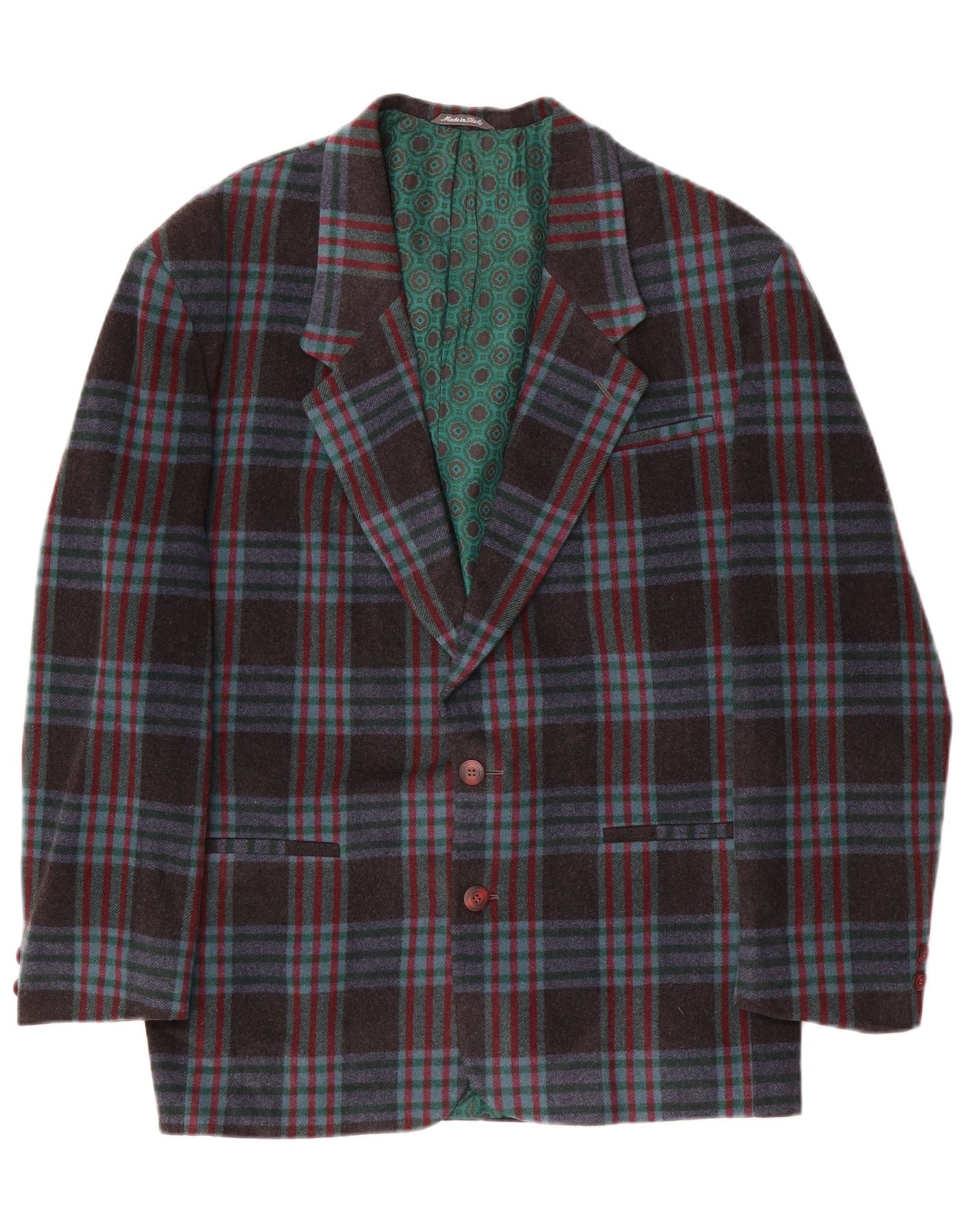 Jaqueta blazer masculina vintage com 2 botões IT 48 lã xadrez azul marinho médio