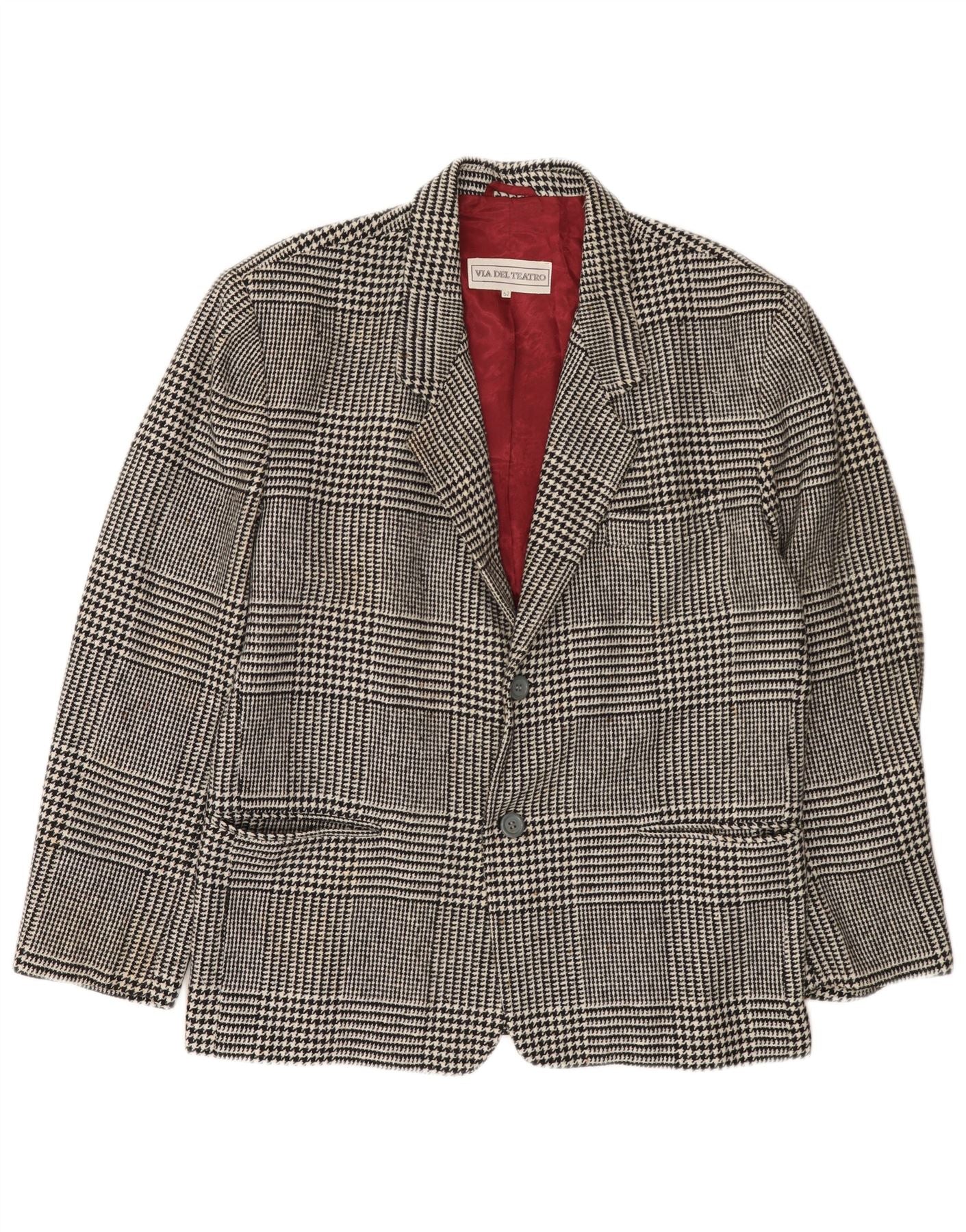 Jaqueta blazer masculina VINTAGE com 2 botões IT 52 XL preta Houndstooth lã