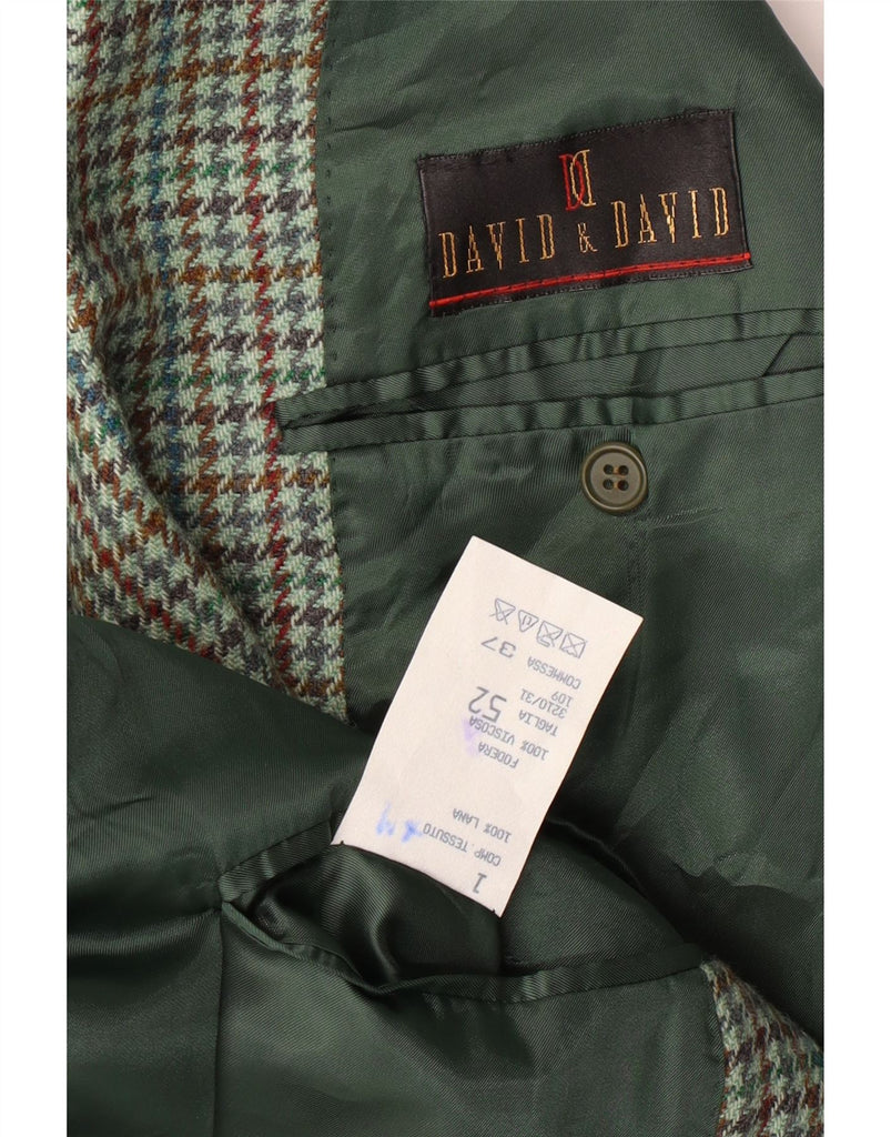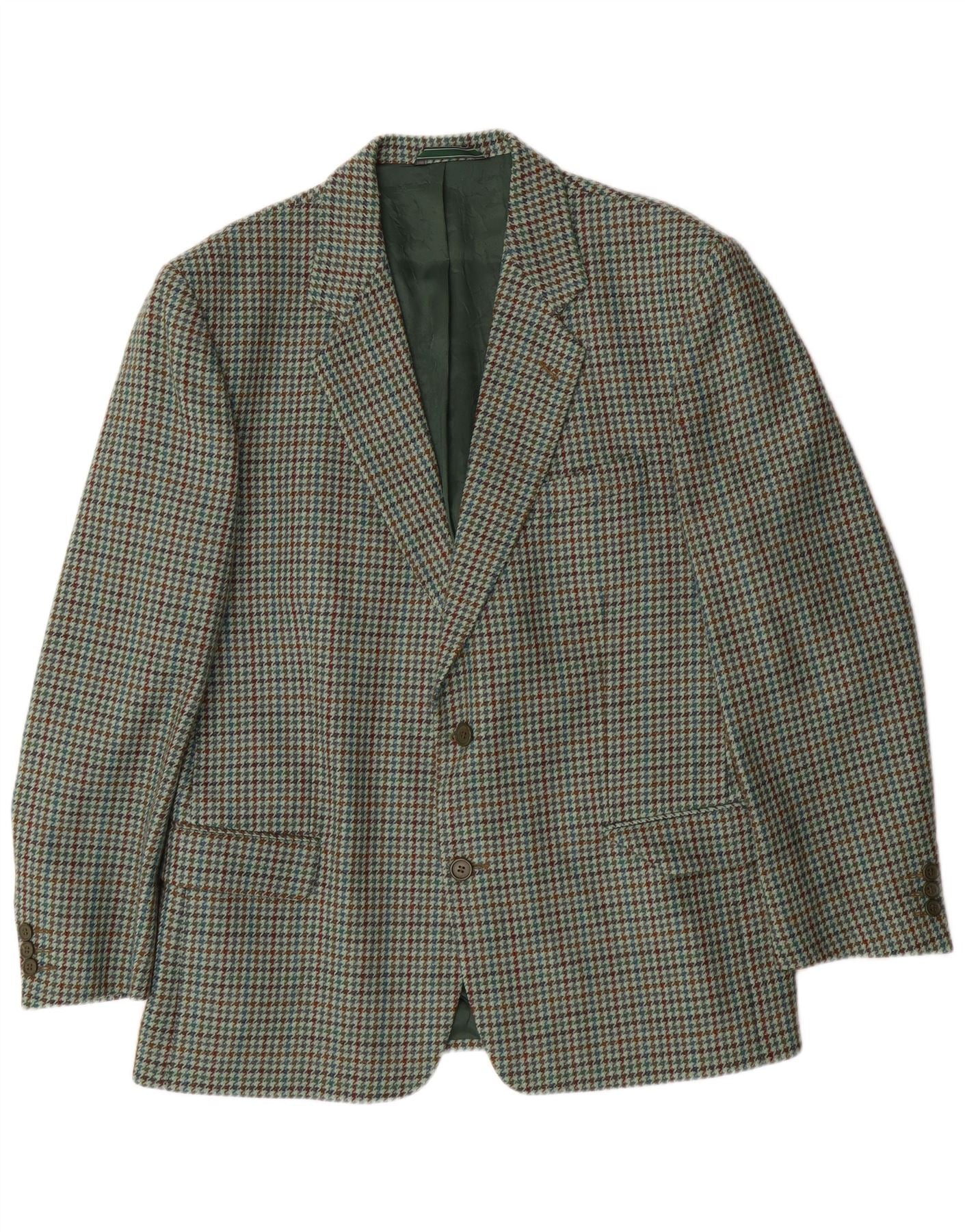 Jaqueta blazer masculina VINTAGE com 2 botões IT 52 XL verde houndstooth lã