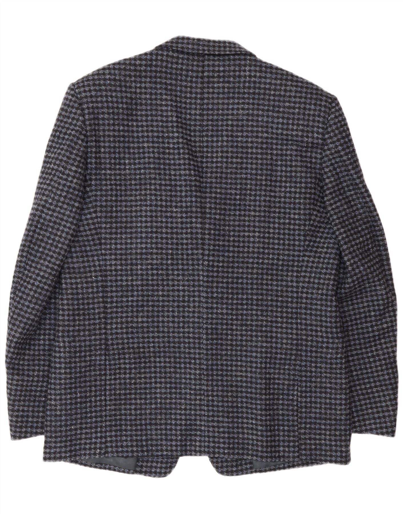 Jaqueta blazer masculina vintage com 2 botões IT 56 3XL azul houndstooth lã virgem