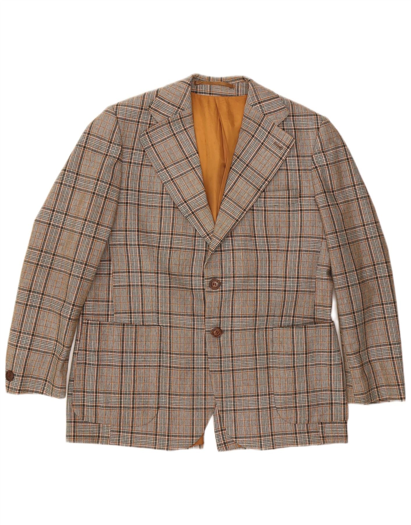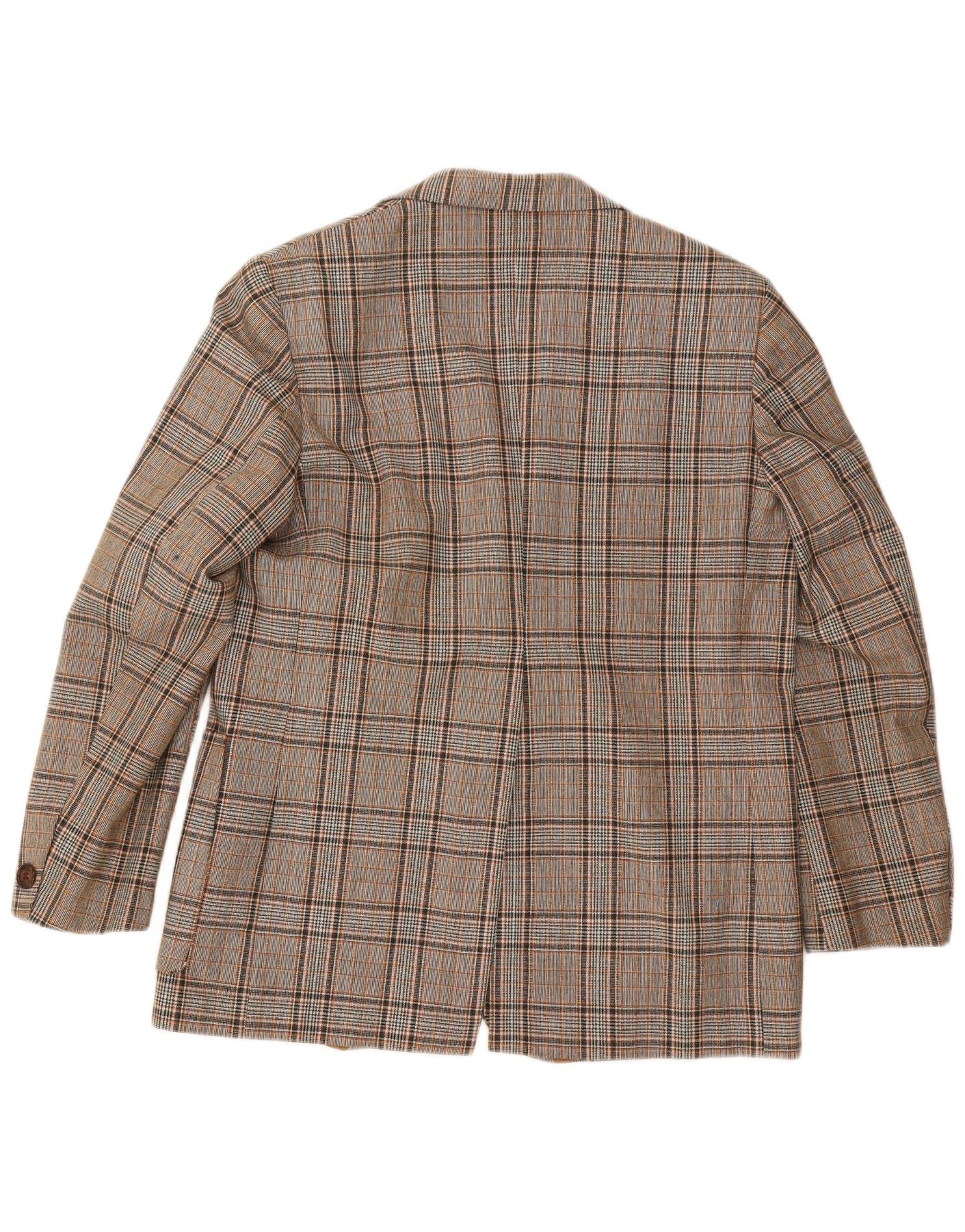 Jaqueta blazer masculina VINTAGE com 2 botões UK 40 grande poliéster xadrez cinza