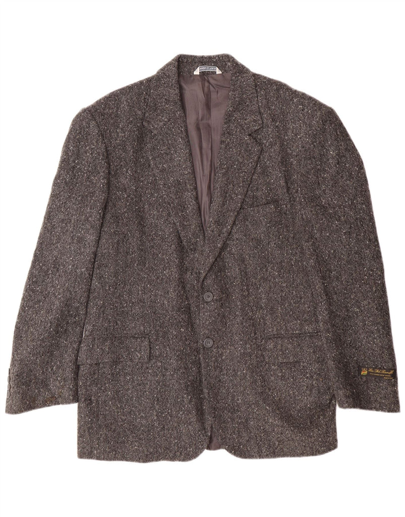 Jaqueta blazer masculina VINTAGE com 2 botões Reino Unido 40 grande cinza manchada de lã nova