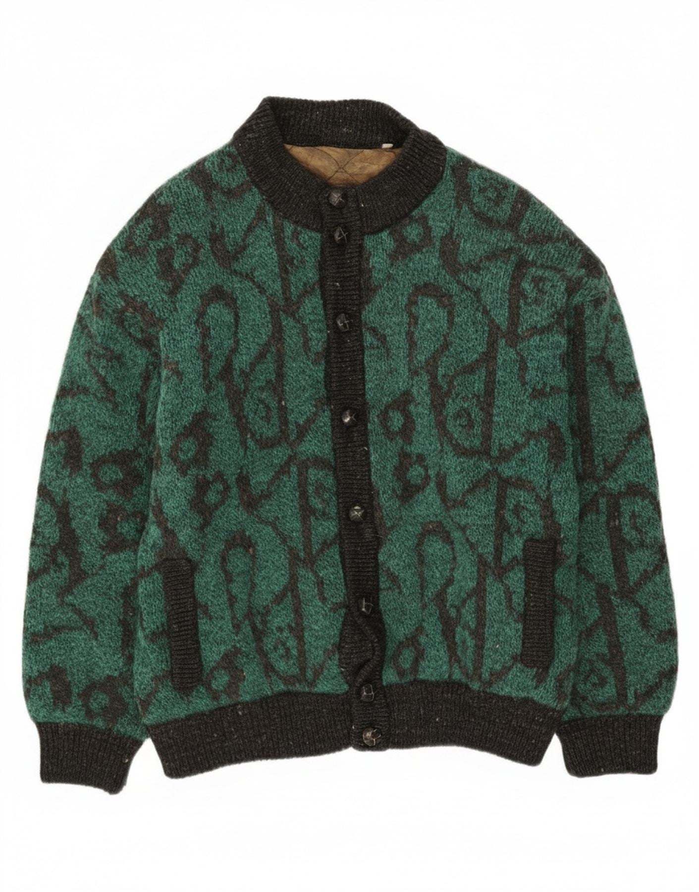 Jaqueta bomber de malha com padrão abstrato masculino vintage IT 48 acrílico verde médio