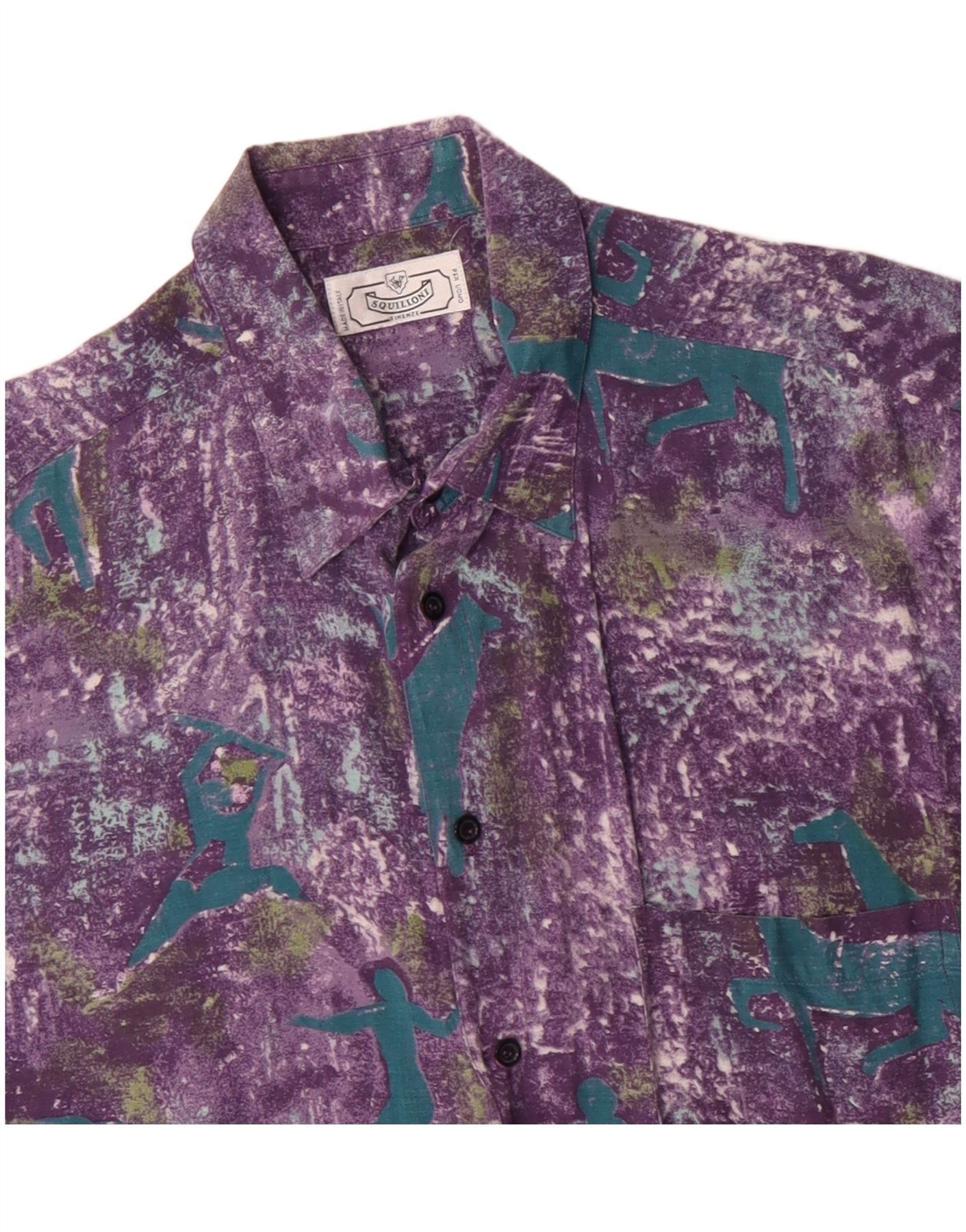 Vintage masculino abstrato Padrão camisa de manga curta grande viscose roxa
