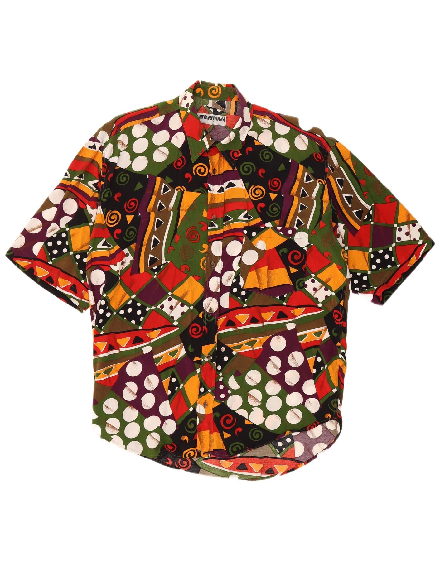 Camisa masculina VINTAGE com estampa abstrata de manga curta média multicolorida
