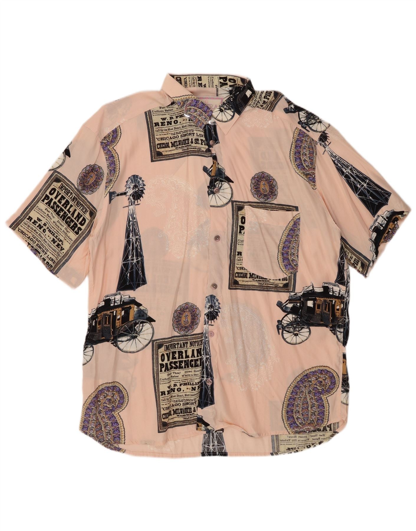 Camisa masculina VINTAGE abstrata de manga curta XL rosa patchwork viscose