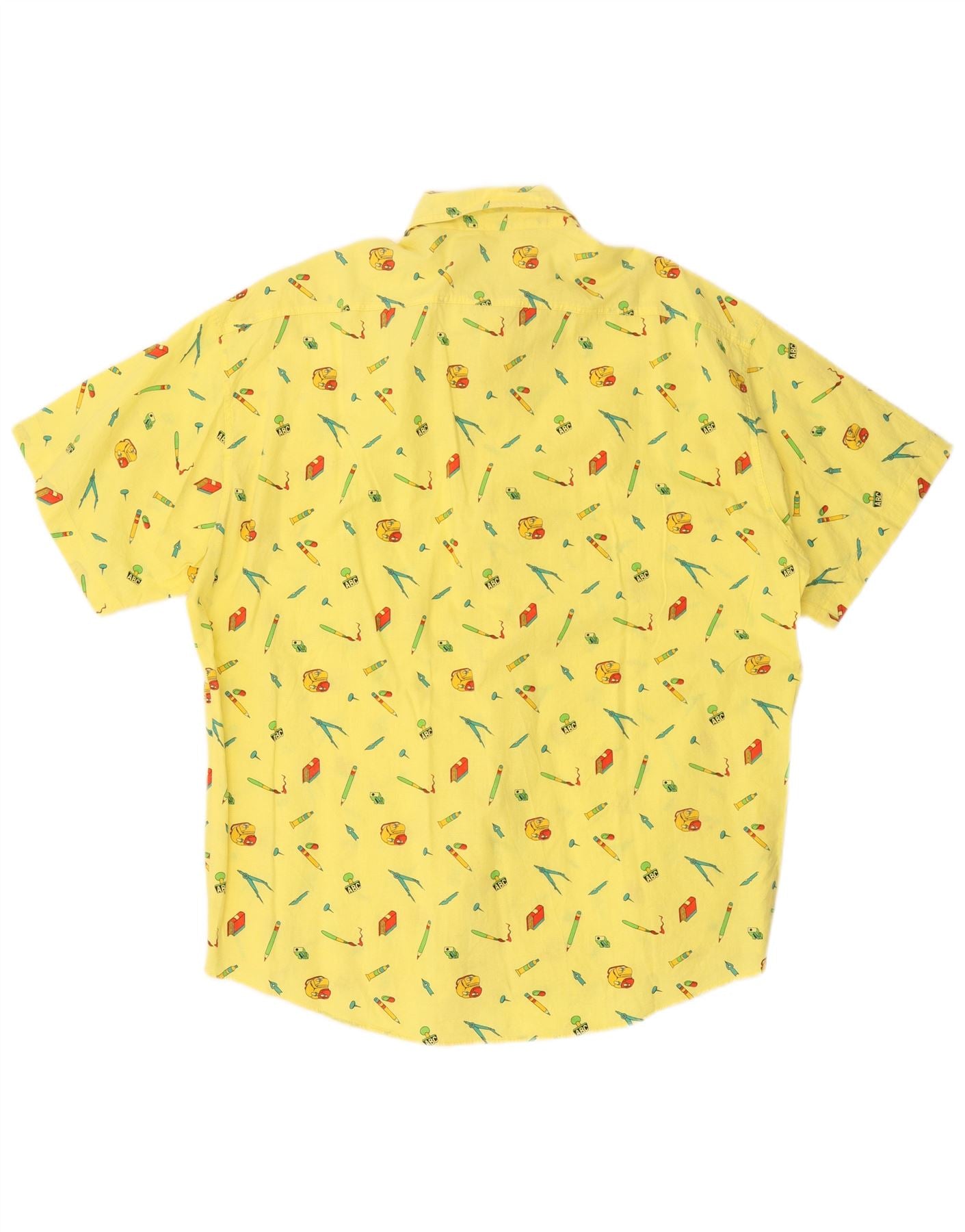 Camisa masculina VINTAGE abstrata de manga curta XL algodão amarelo