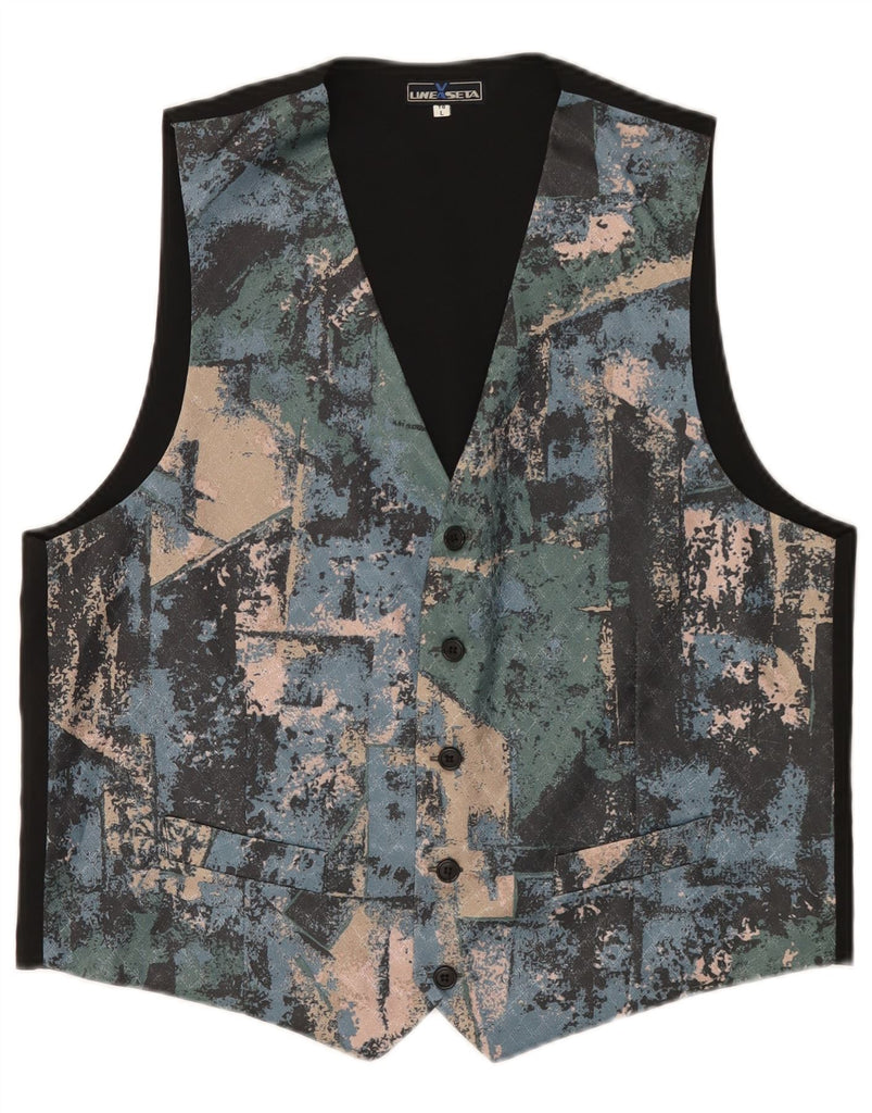 VINTAGE Mens Abstract Pattern Waistcoat Large Multicoloured Polyester
