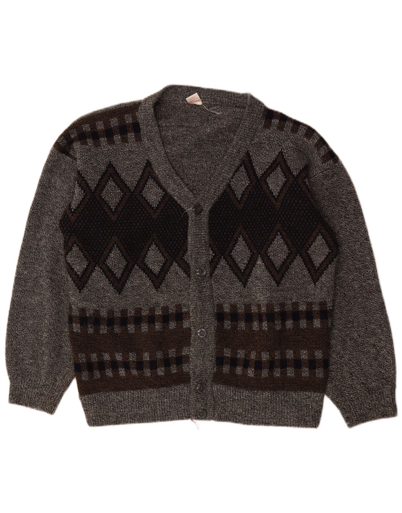 Suéter cardigã masculino VINTAGE 2XL cinza Argyle/acrílico diamante