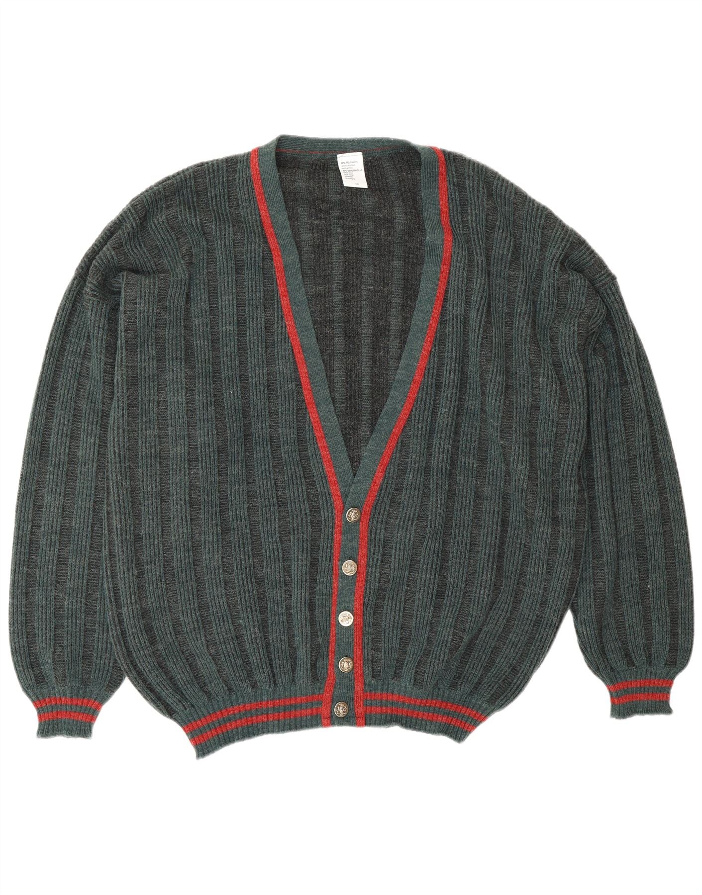 Suéter cardigã masculino VINTAGE IT 58 3XL poliacrílico listrado verde