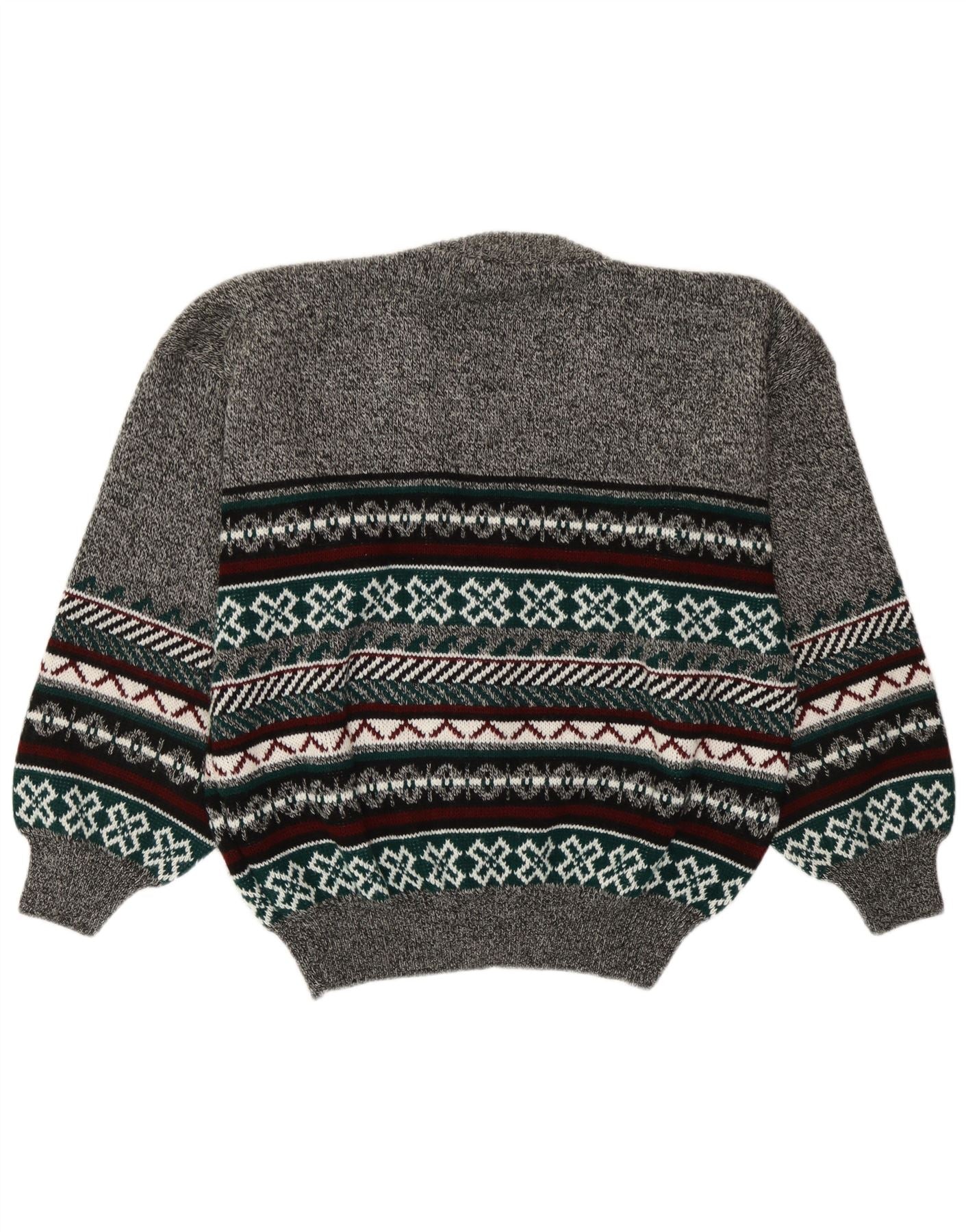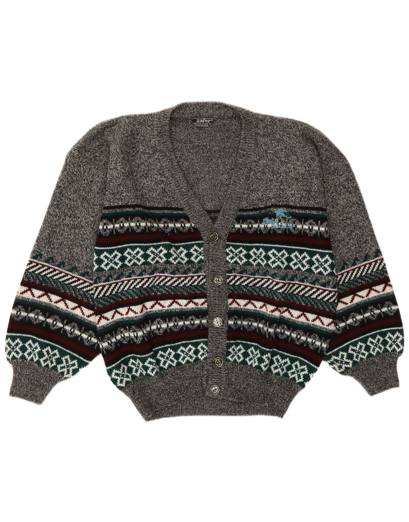 Suéter cardigã masculino vintage grande cinza Fair Isle