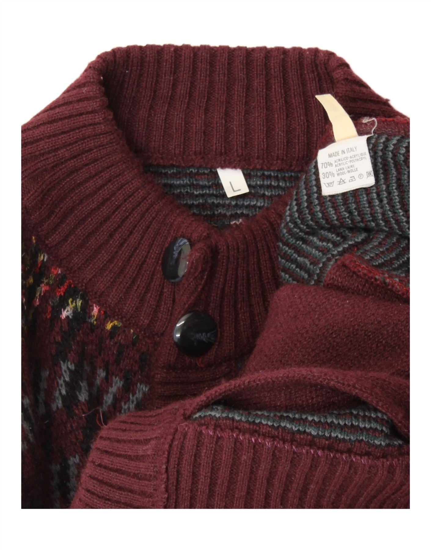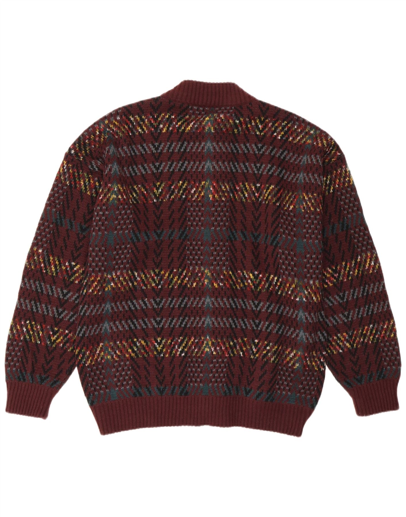 Suéter cardigã masculino VINTAGE grande acrílico geométrico marrom