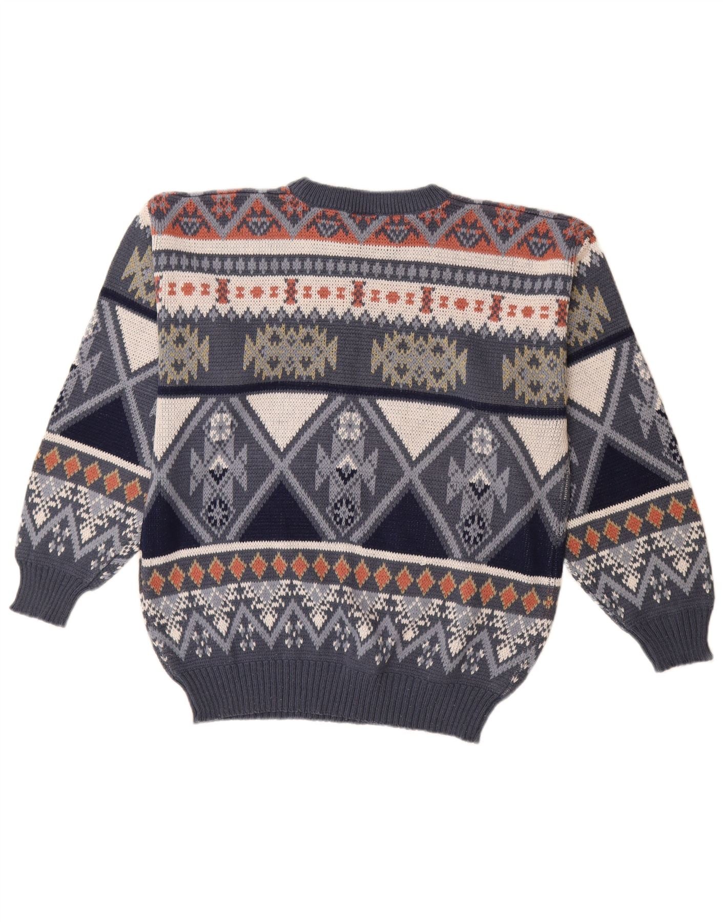 Suéter masculino VINTAGE com gola redonda IT 48/50 médio azul marinho Fair Isle