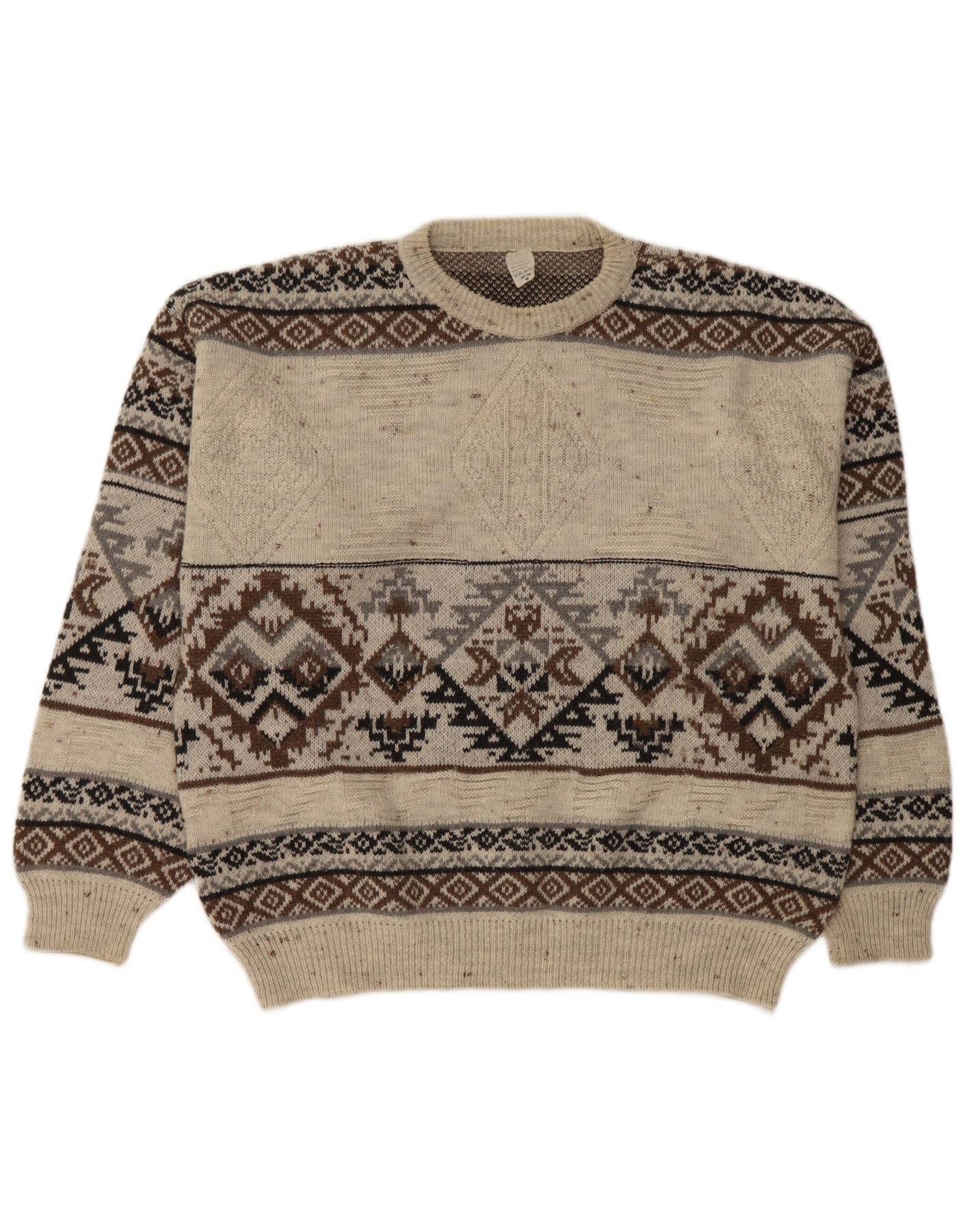Suéter masculino vintage com gola redonda IT 48/50 médio branco Fair Isle