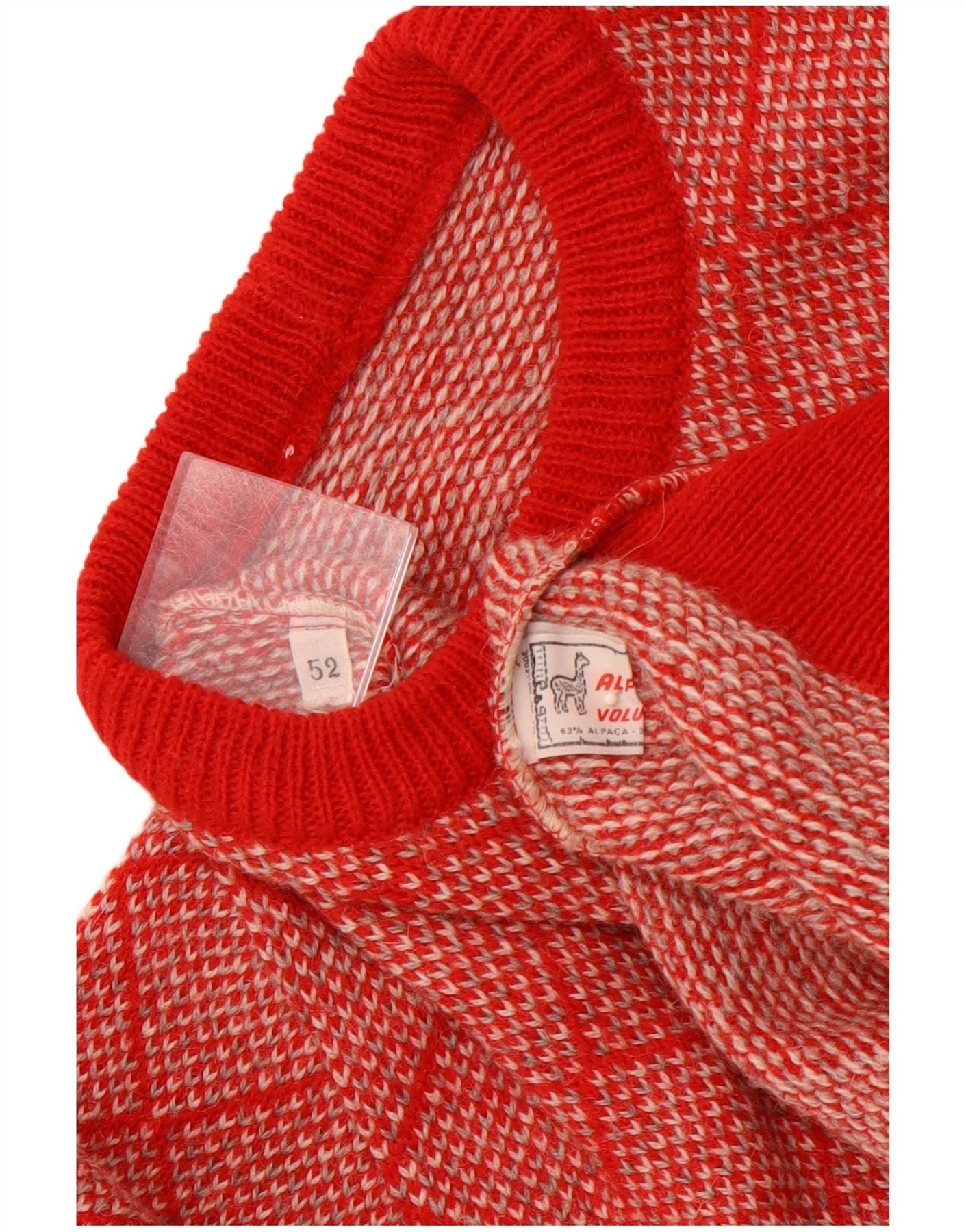 Suéter masculino VINTAGE com gola redonda IT 52 grande vermelho geométrico