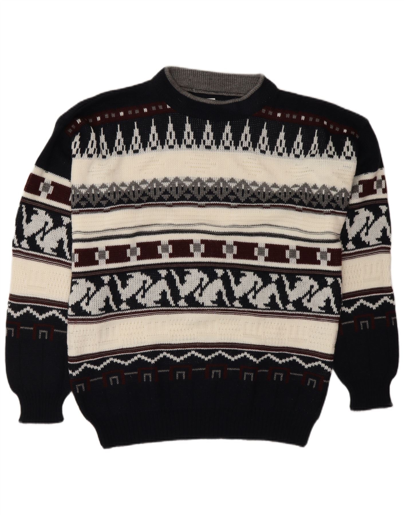 Suéter masculino VINTAGE com gola redonda grande multicolorido Fair Isle