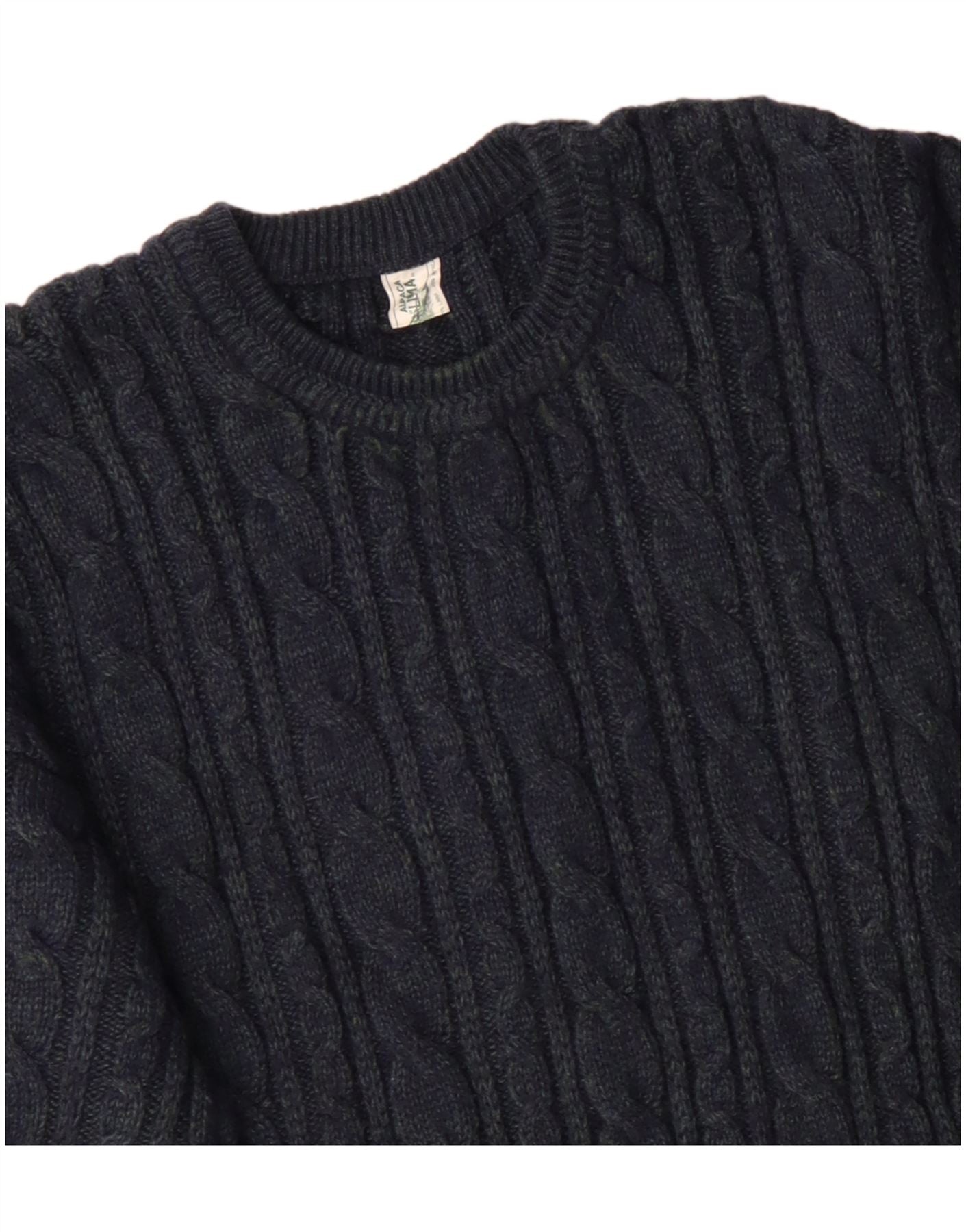 Suéter masculino VINTAGE com gola redonda grande acrílico azul marinho