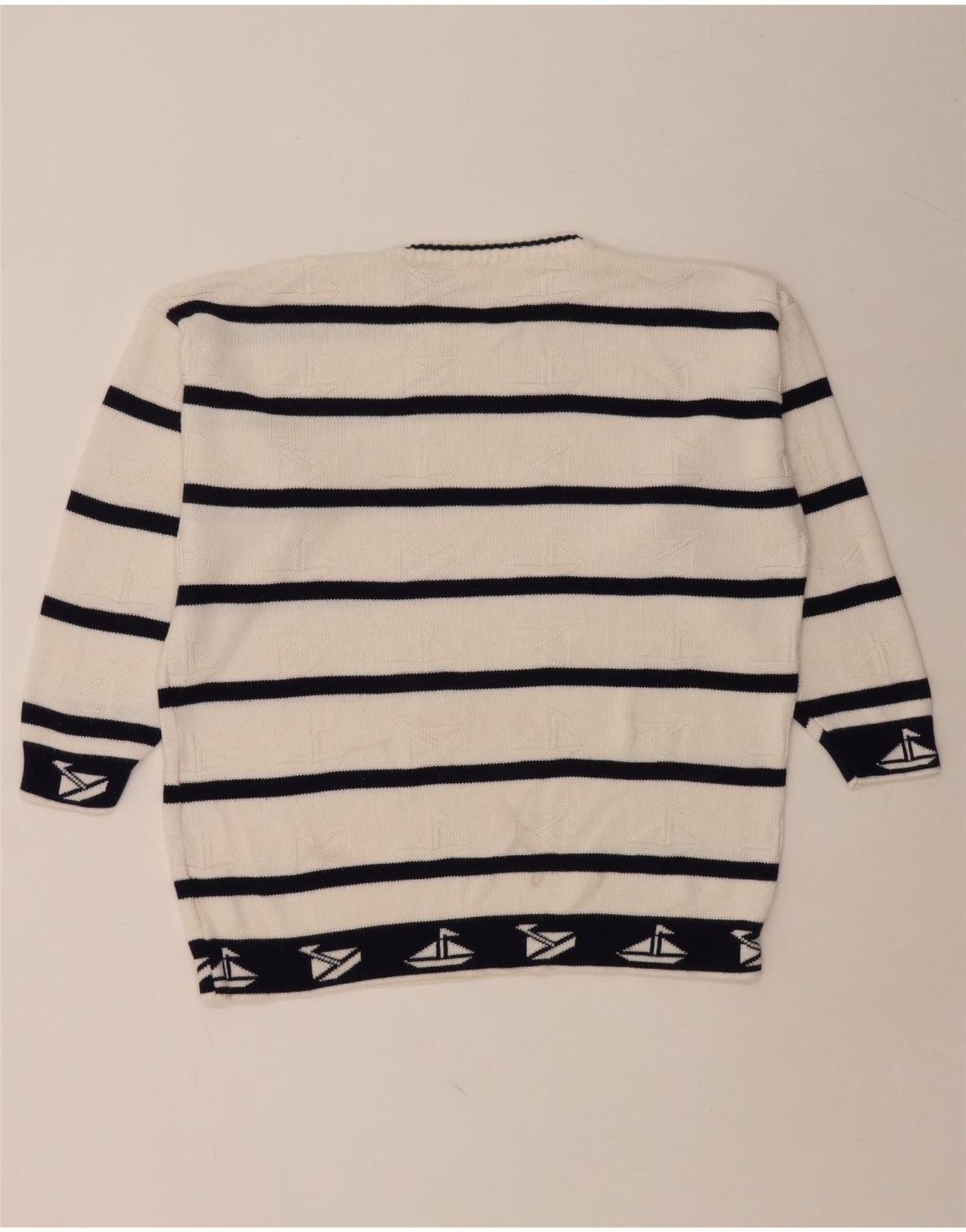 Suéter masculino VINTAGE com gola redonda grande listrado branco