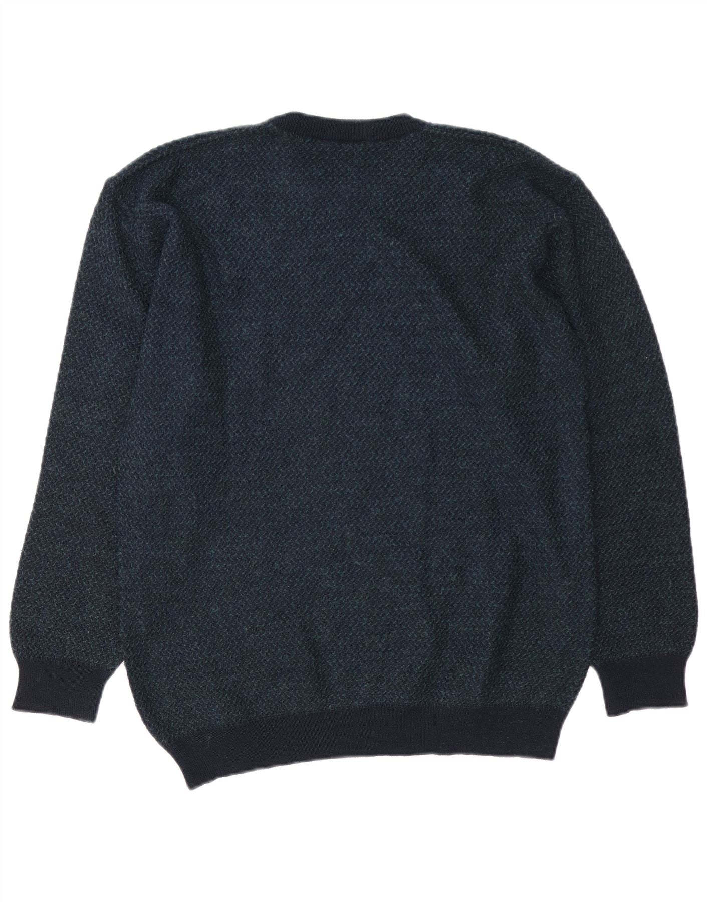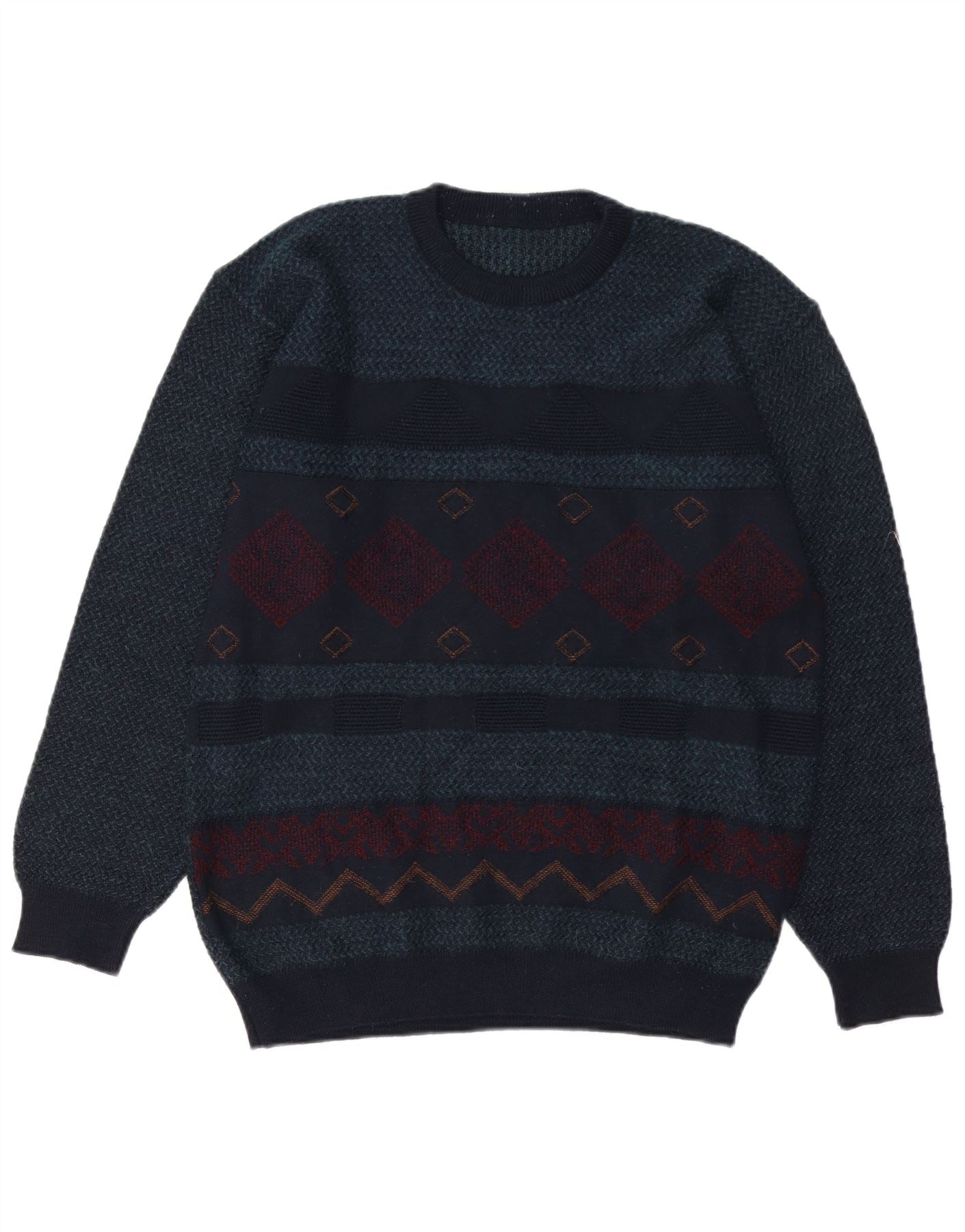 Suéter masculino VINTAGE com gola redonda médio azul marinho geométrico
