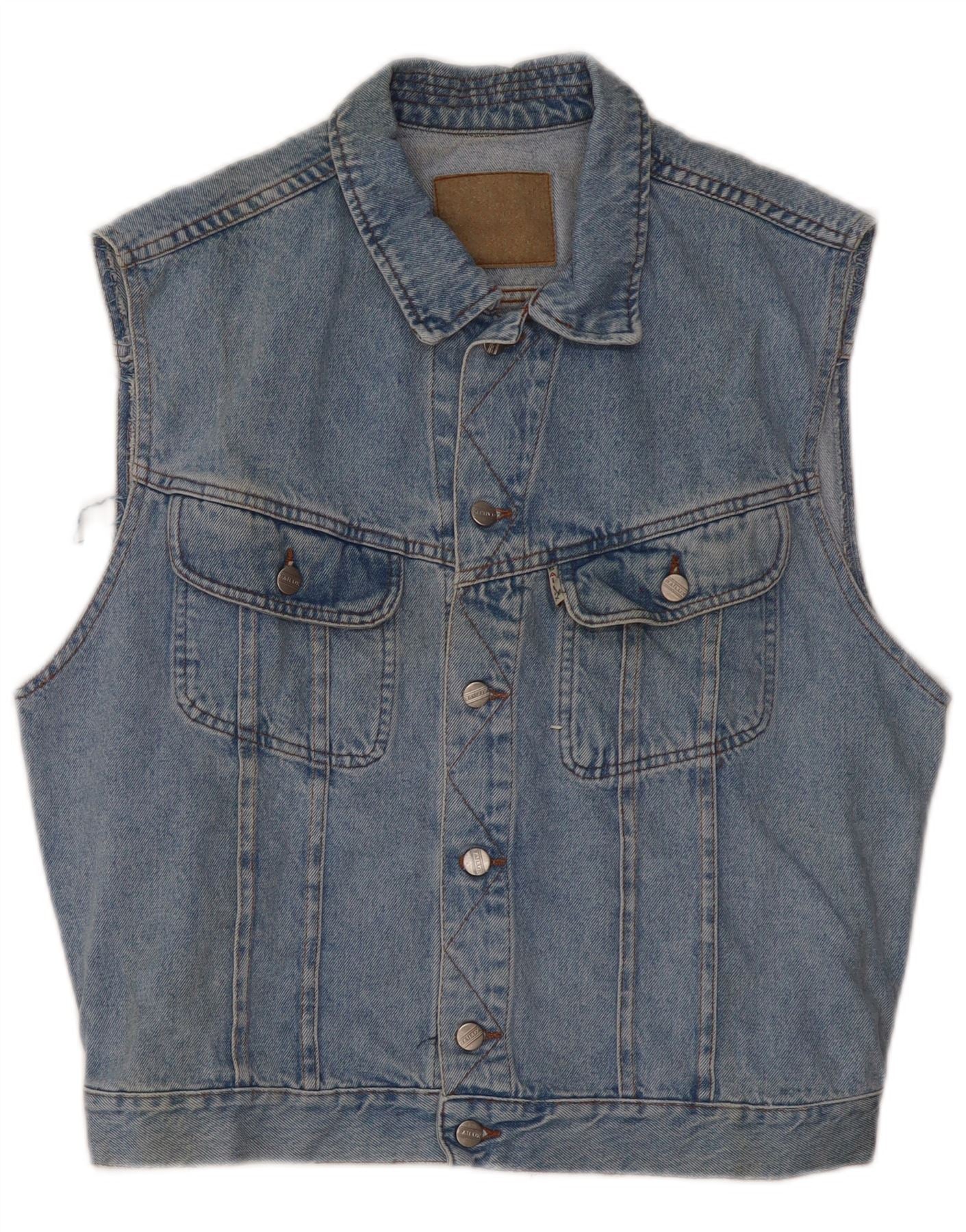 Colete jeans masculino vintage UK 36 pequeno azul