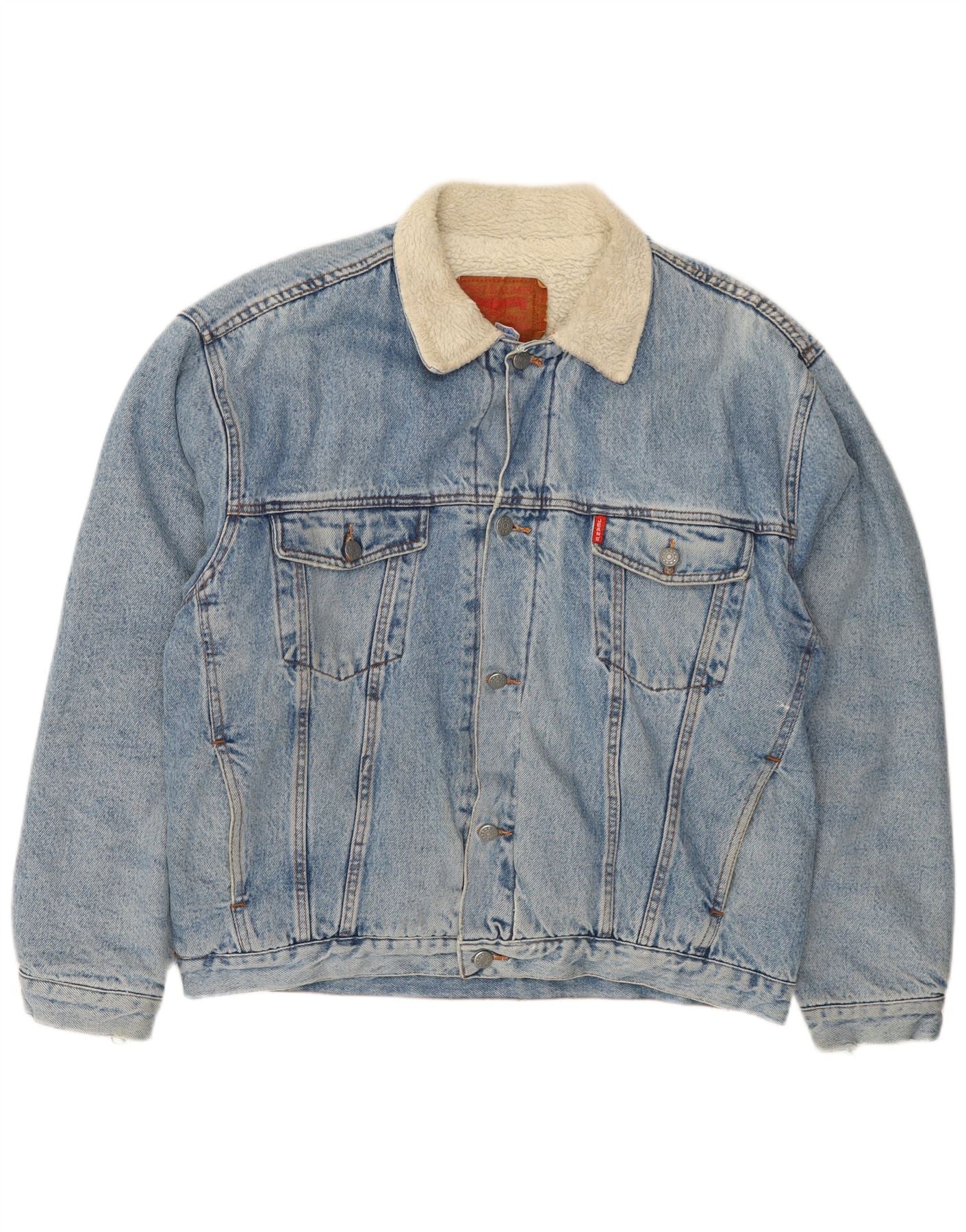 Jaqueta jeans masculina VINTAGE Sherpa UK 41 XL algodão azul