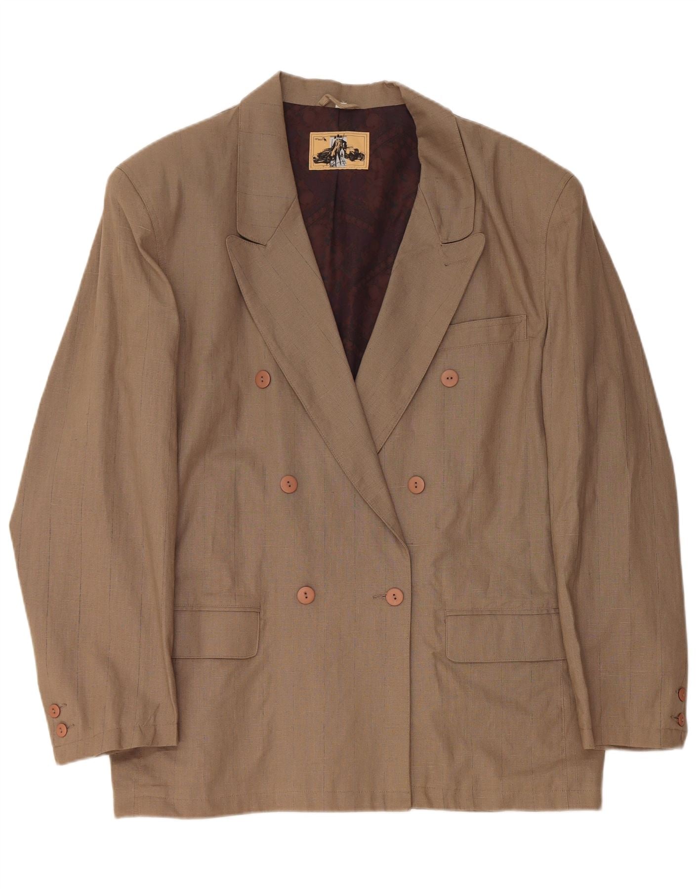 Jaqueta blazer masculina VINTAGE com peito duplo EU 56 3XL linho marrom