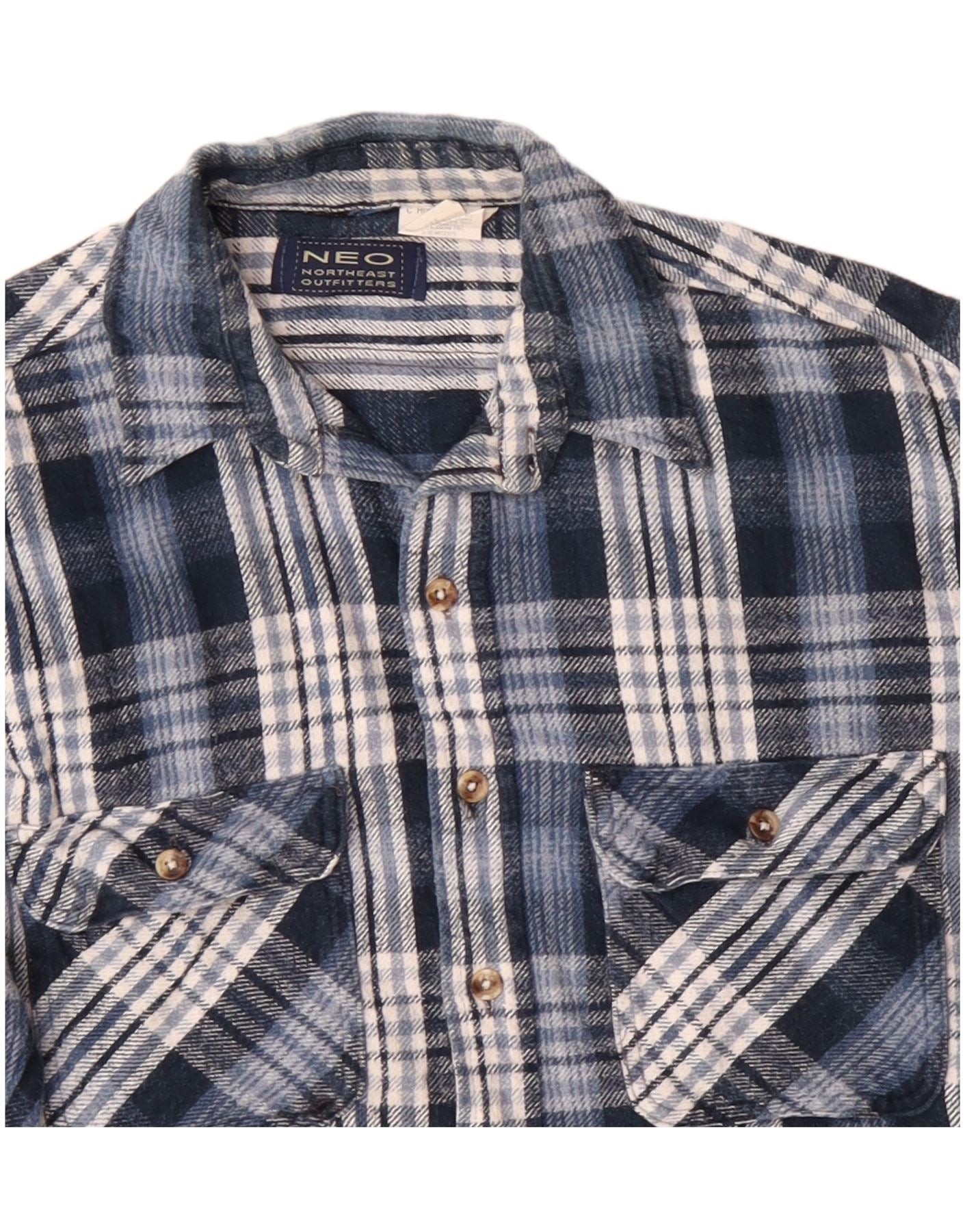 Camisa masculina de flanela VINTAGE grande algodão xadrez azul