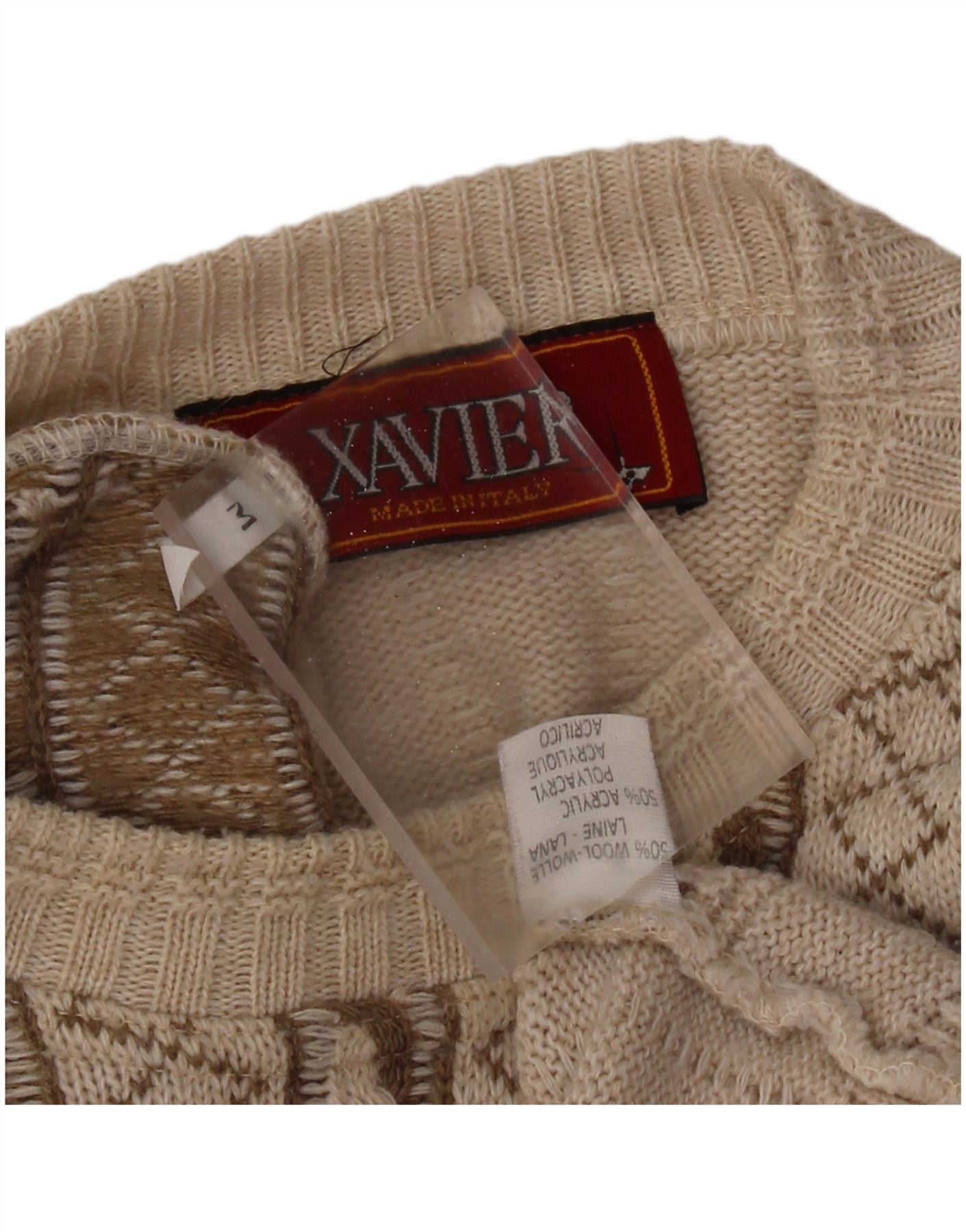 Suéter masculino VINTAGE com gola redonda e lã listrada bege médio