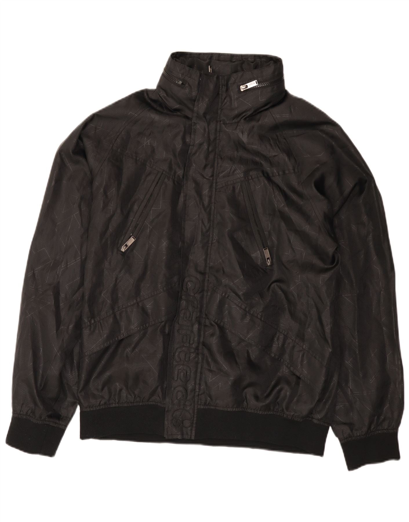 Jaqueta bomber masculina vintage com capuz gráfico UK 42 XL preta geométrica