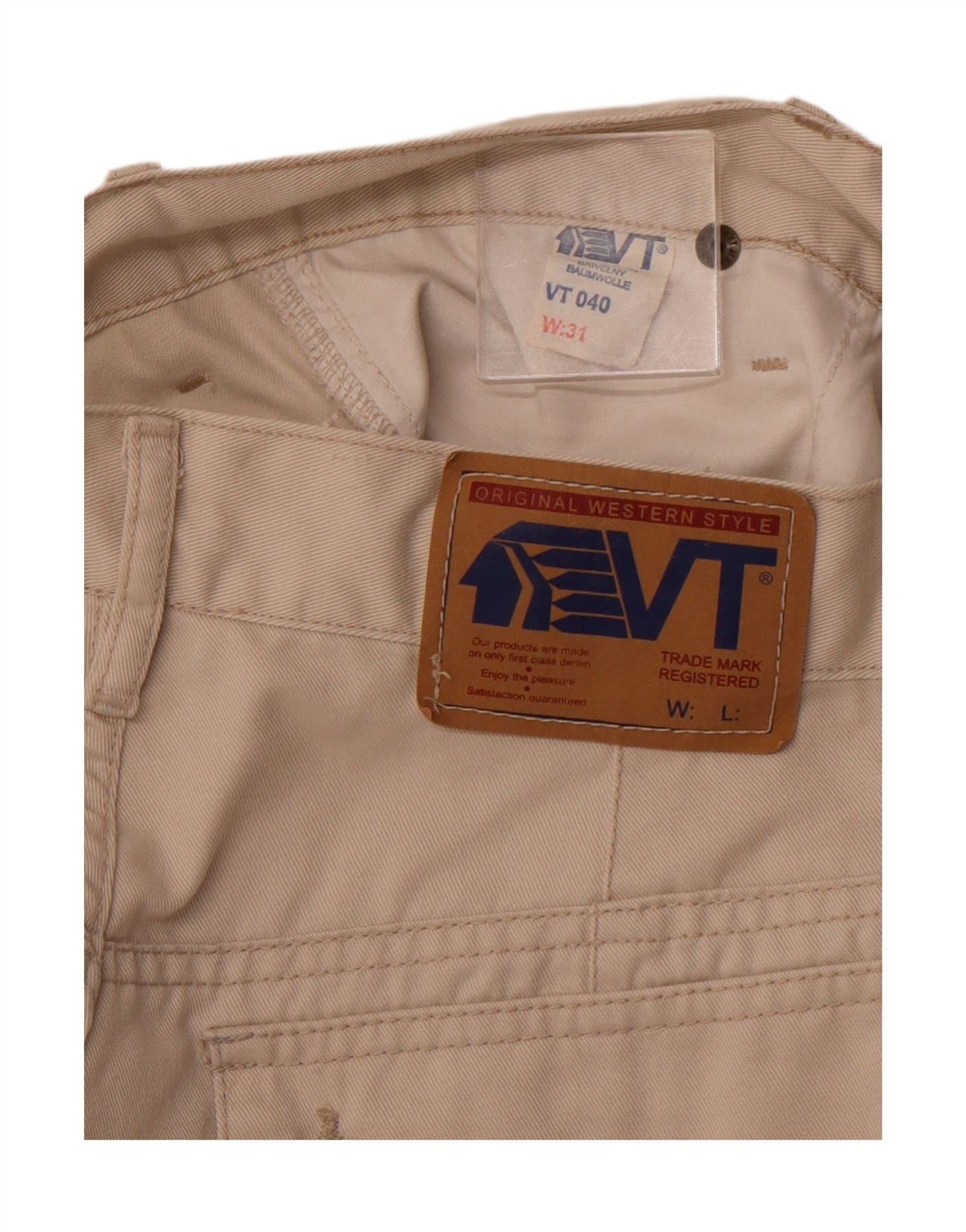 Shorts cargo masculino VINTAGE de cintura alta W31 algodão bege médio