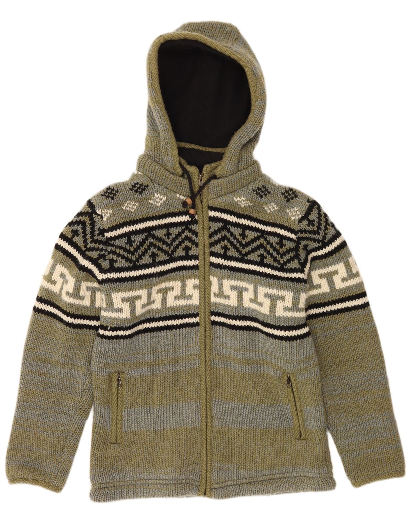 Suéter cardigã masculino VINTAGE com capuz médio cáqui lã Fair Isle