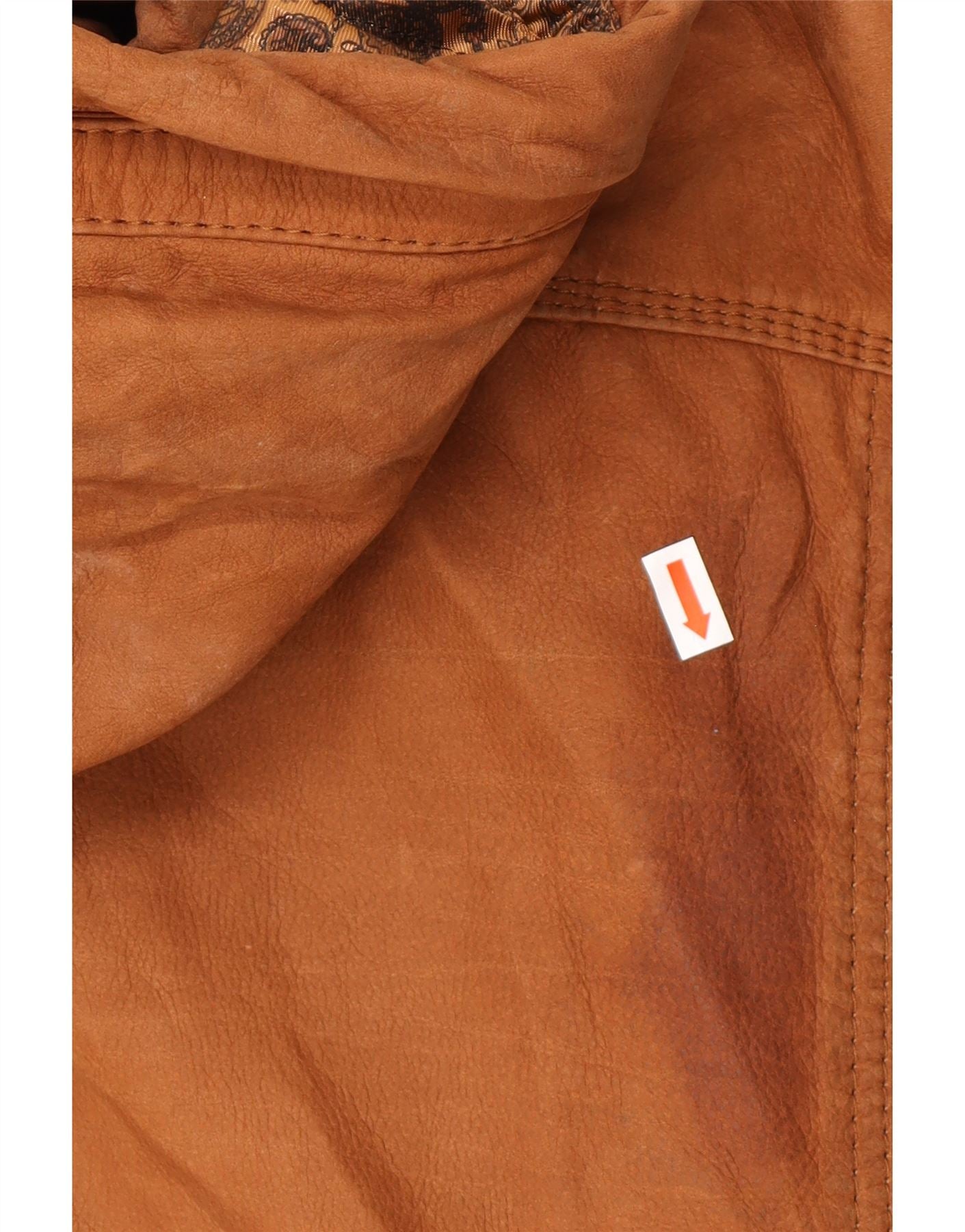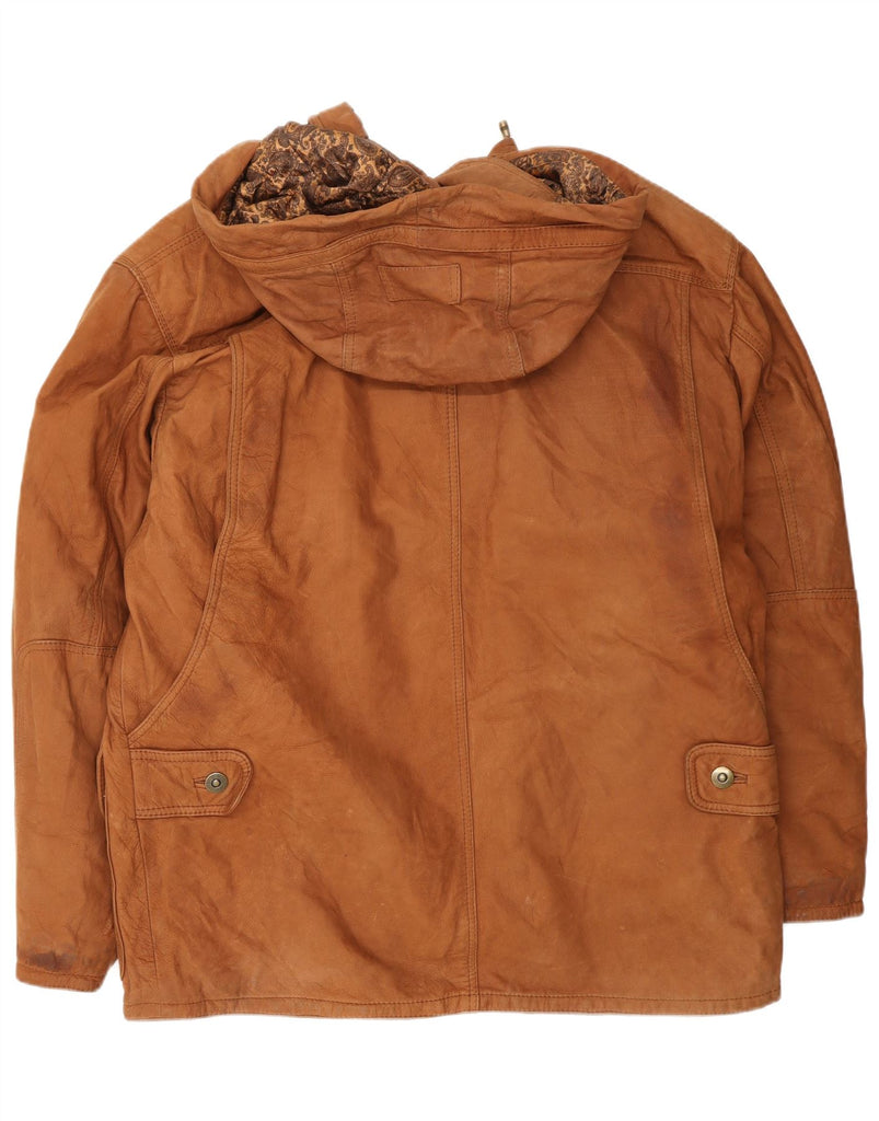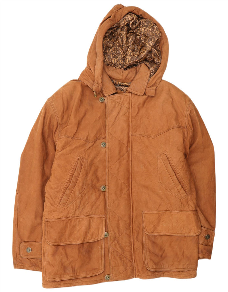 Jaqueta masculina de couro com capuz VINTAGE EU 54 2XL couro marrom