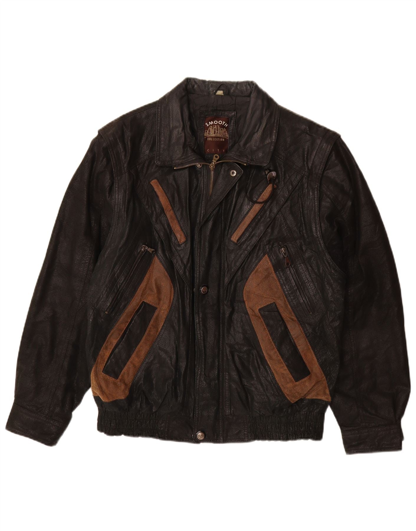 Jaqueta de couro masculina VINTAGE Reino Unido 40 grande couro preto colorblock