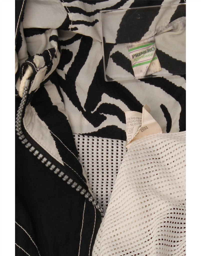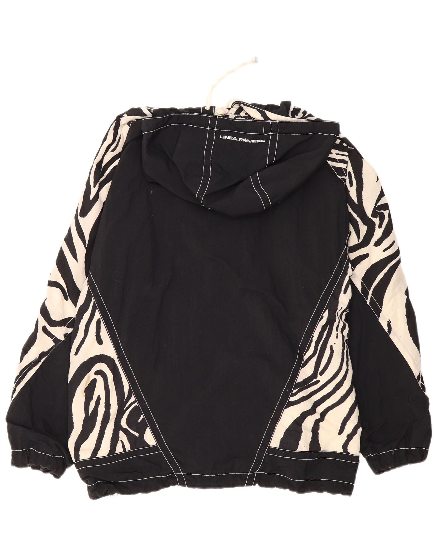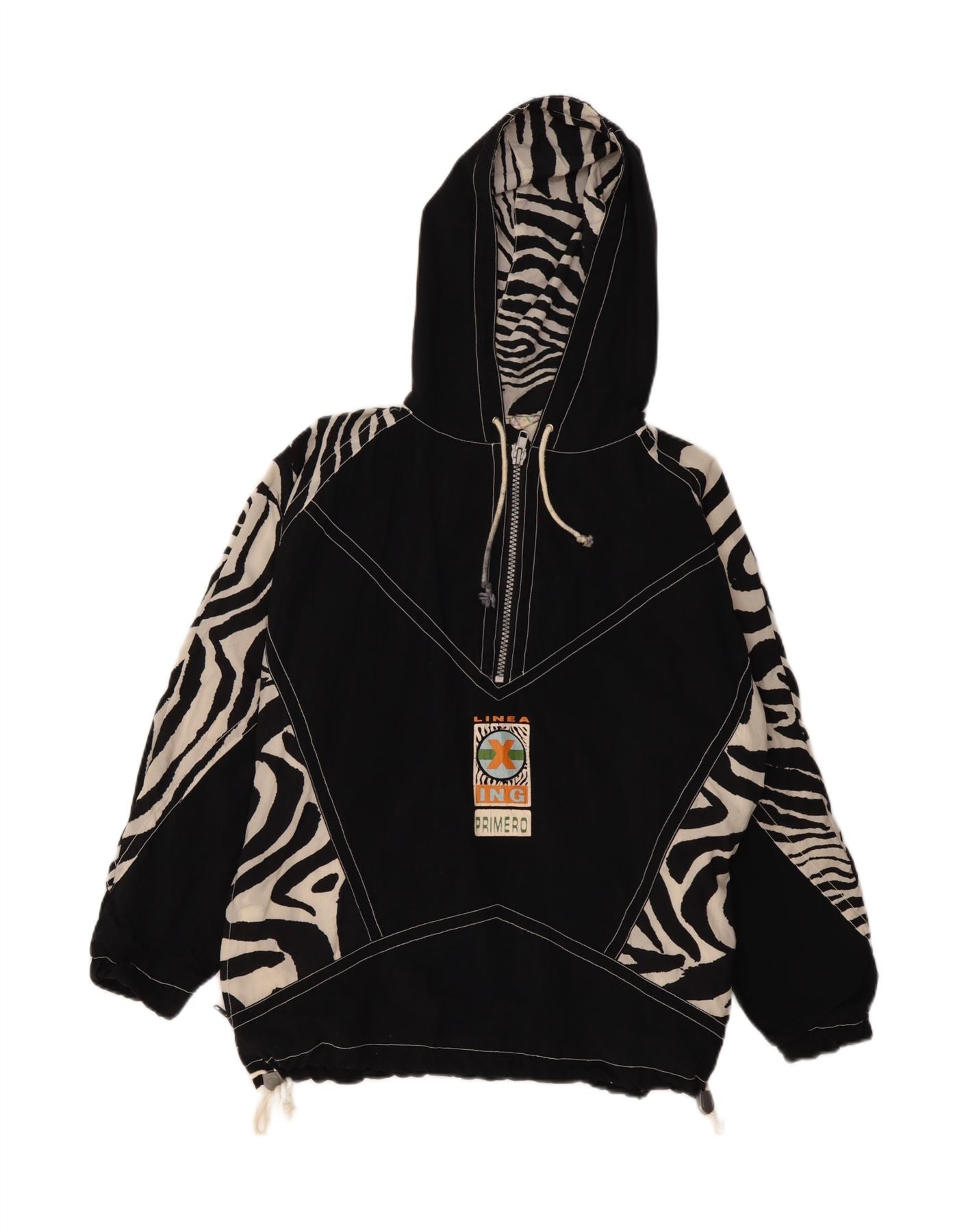 Jaqueta anorak masculina VINTAGE com capuz e ajuste solto Reino Unido 36 pequena estampa animal preta