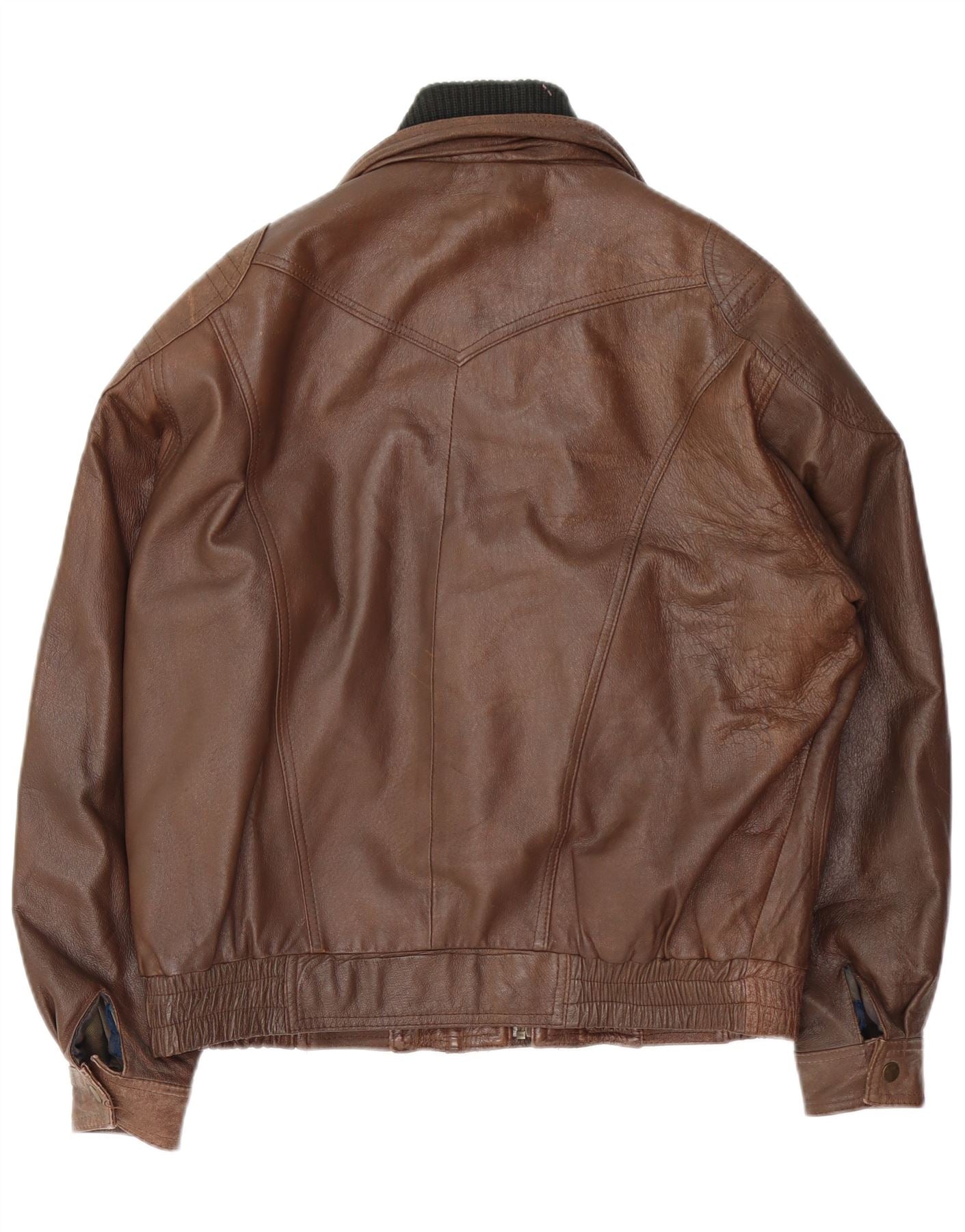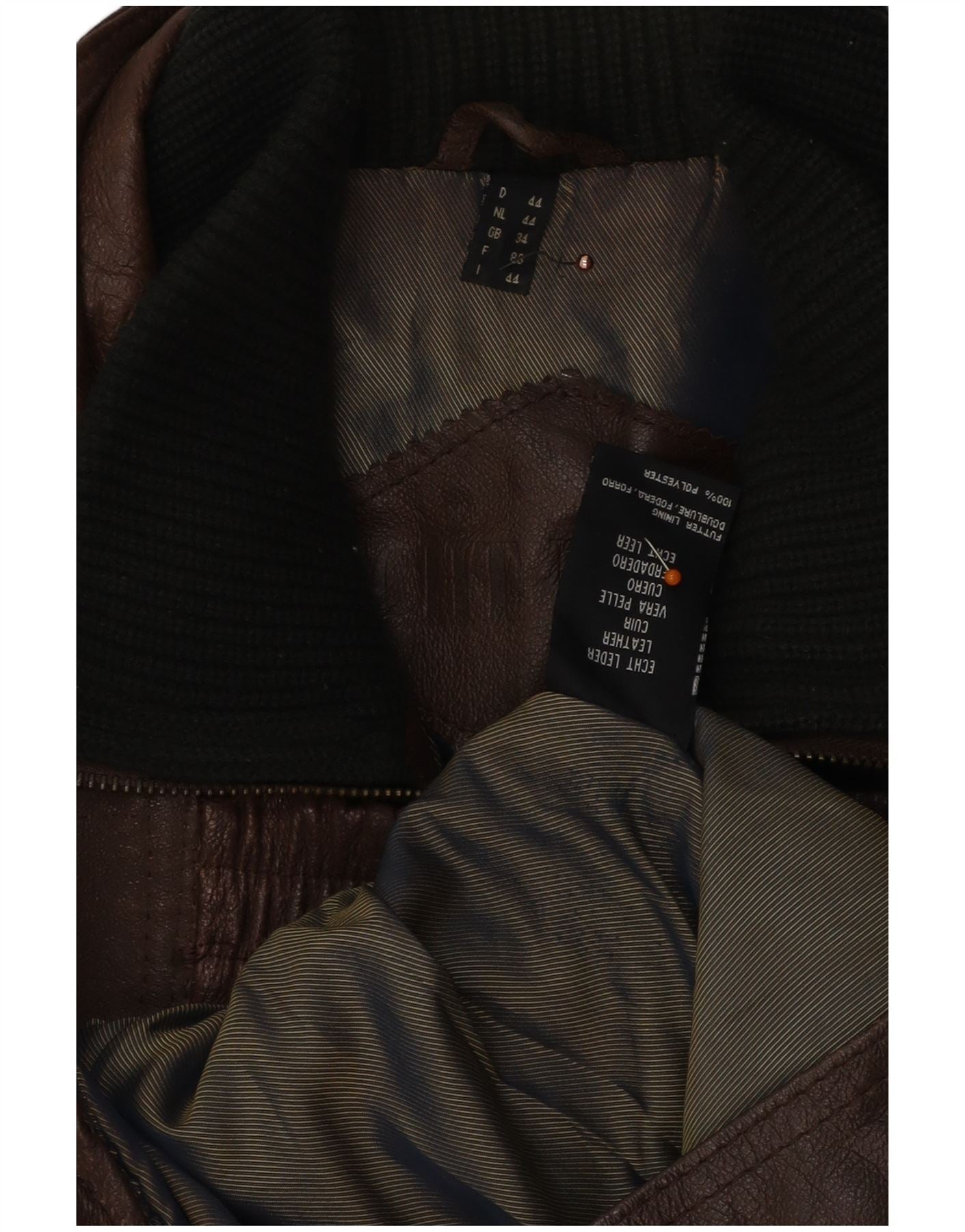 Jaqueta de couro masculina VINTAGE solta ajuste Reino Unido 34 XS couro marrom