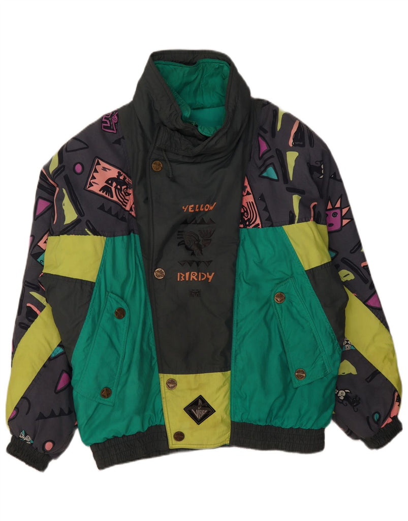 Jaqueta de esqui masculina VINTAGE Loose Fit UK 40 grande geométrica multicolorida