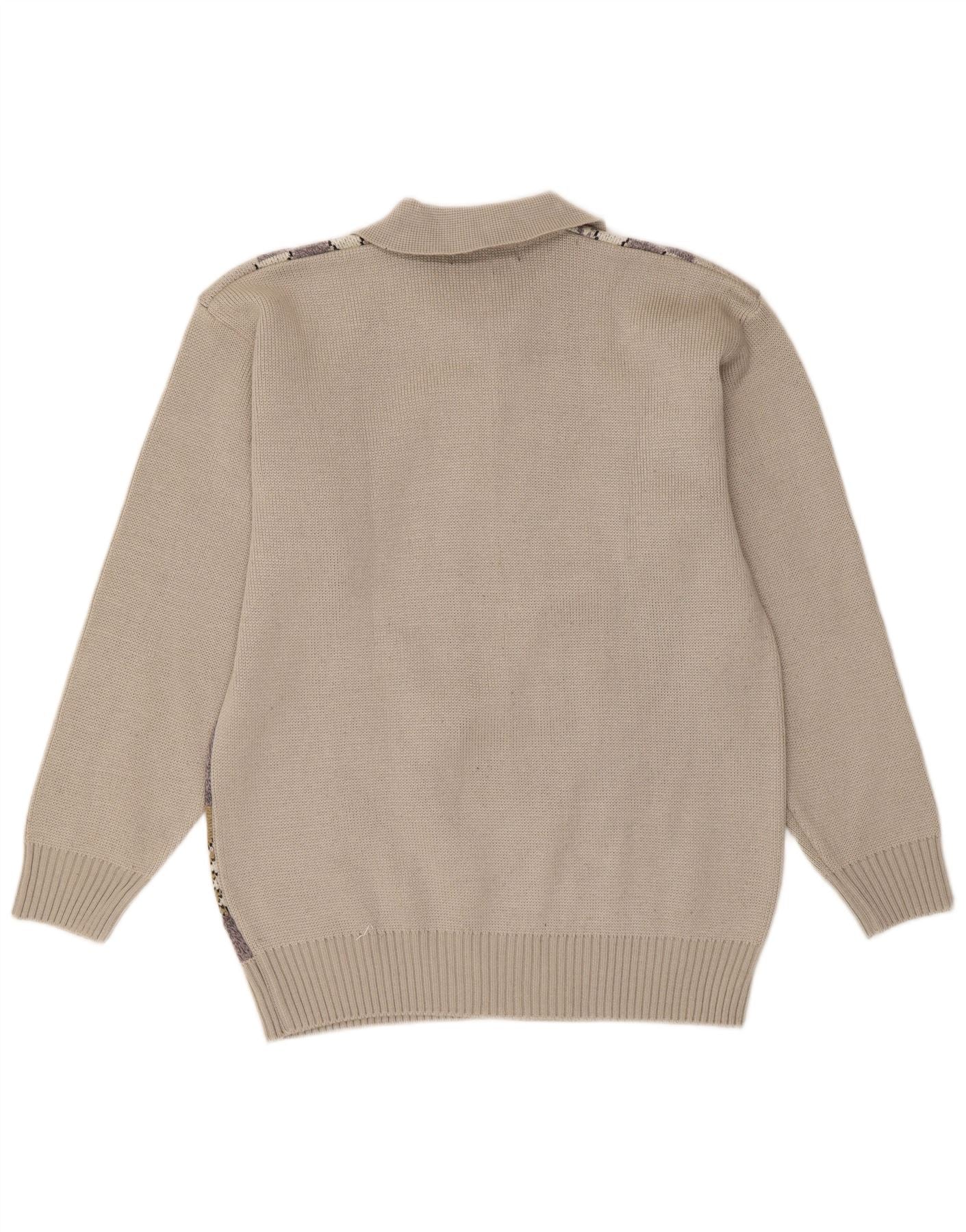 Suéter masculino VINTAGE com gola polo IT 50 médio bege geométrico
