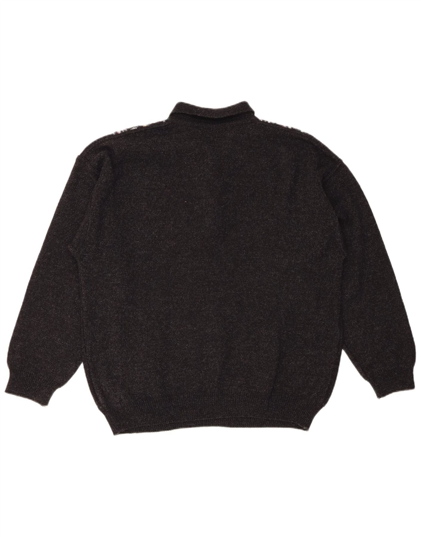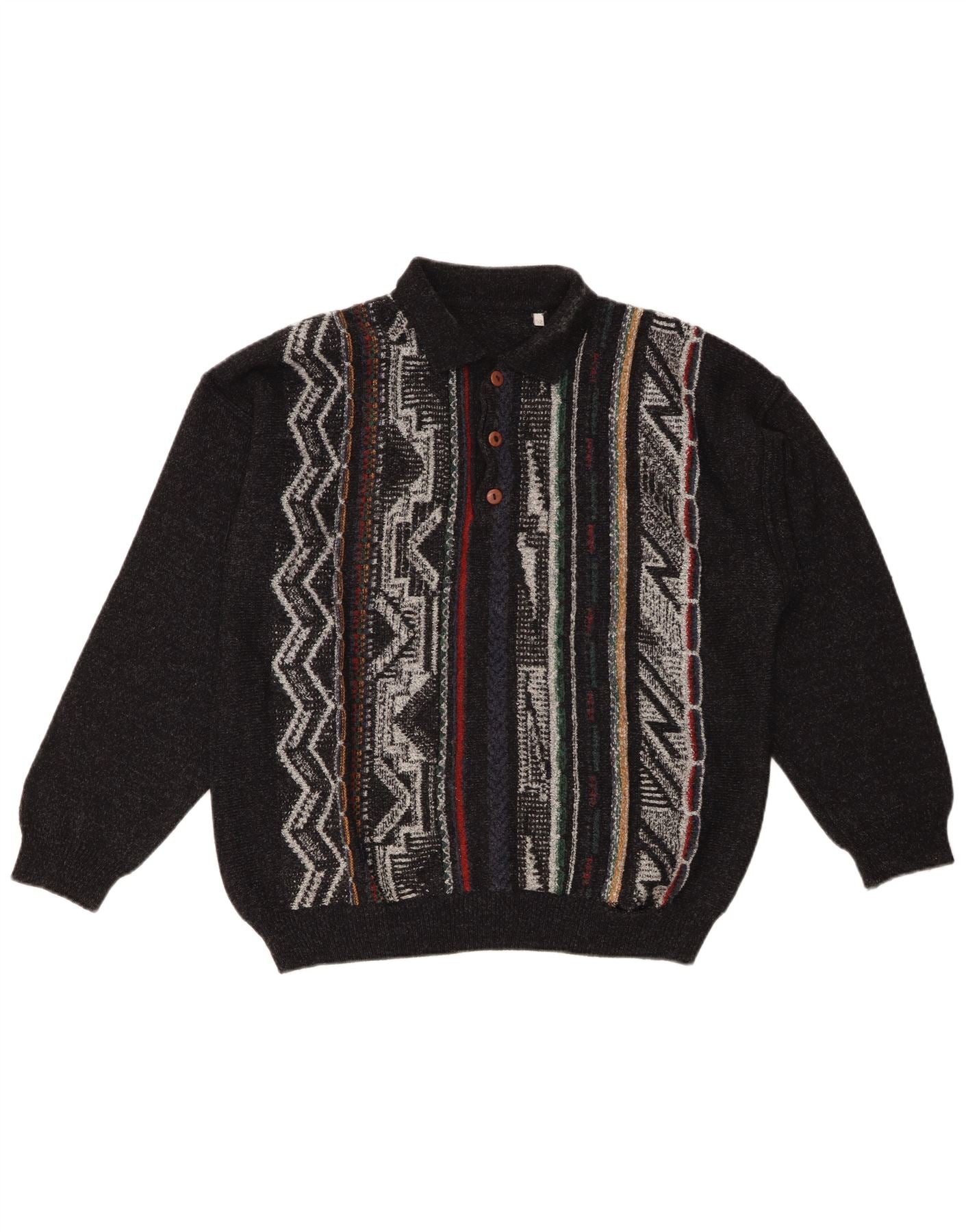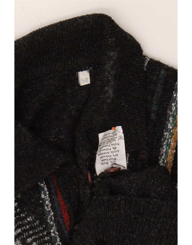 VINTAGE Mens Polo Neck Jumper Sweater IT 52 Large Black Geometric Wool