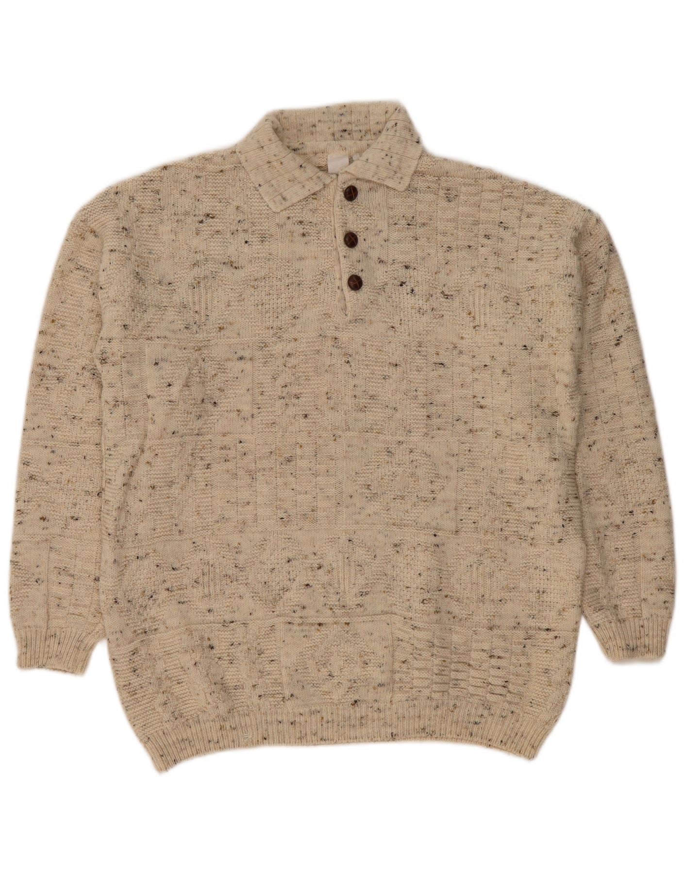 Suéter masculino VINTAGE com gola polo grande bege manchado