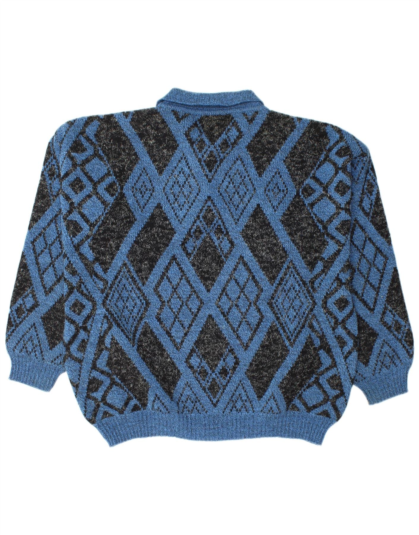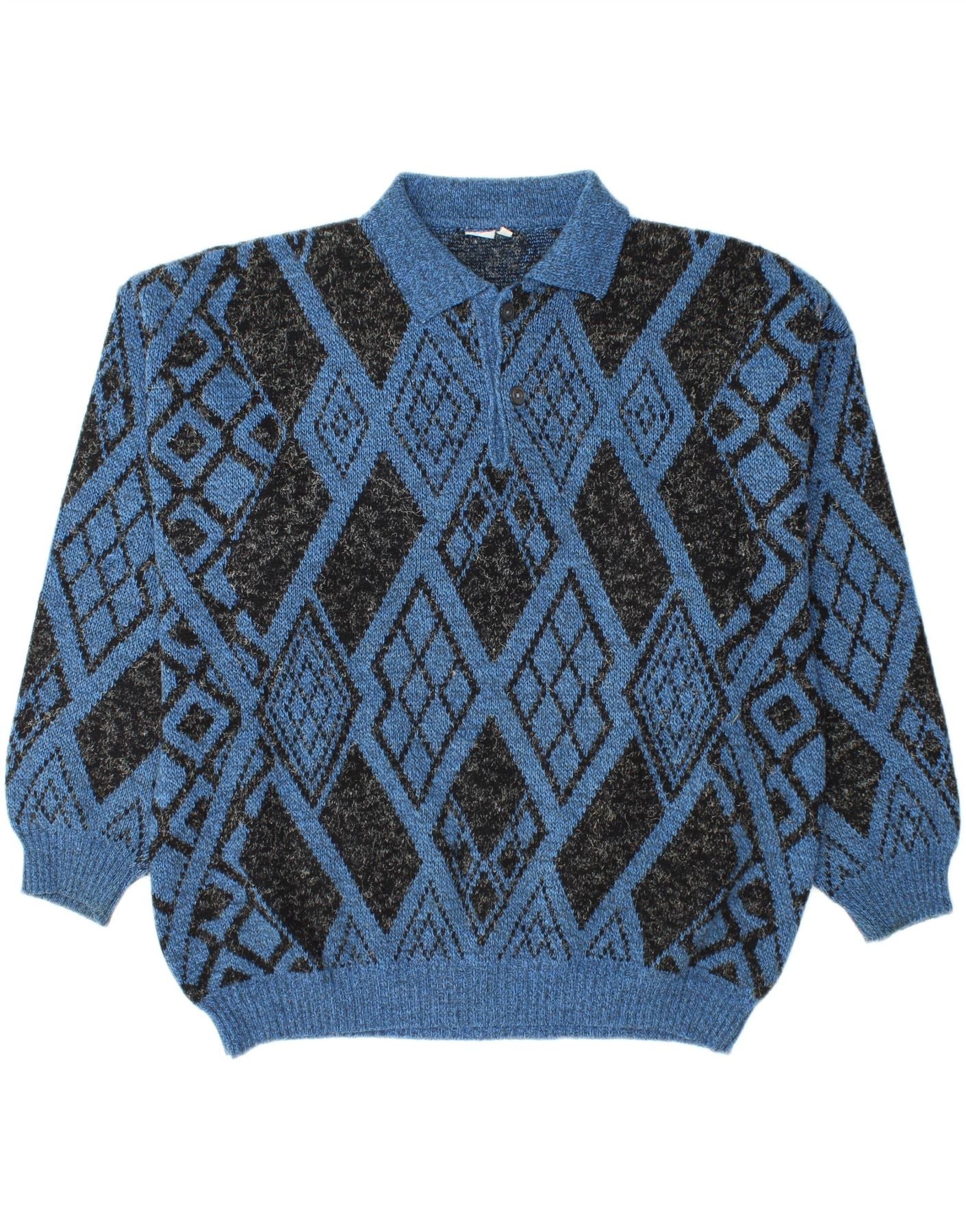 Suéter masculino VINTAGE com gola polo grande azul Argyle/Diamante