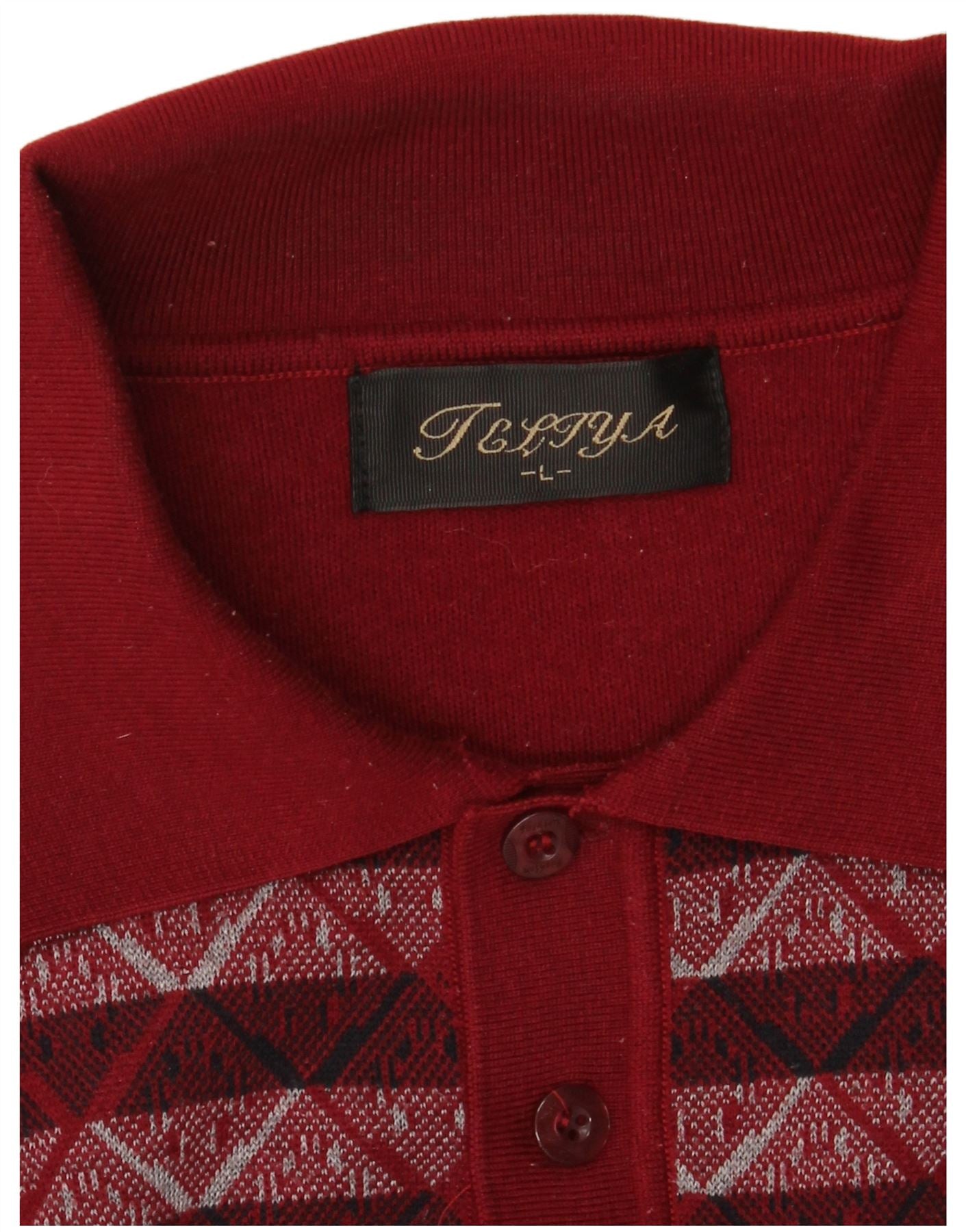 Suéter masculino VINTAGE com gola polo grande geométrico borgonha
