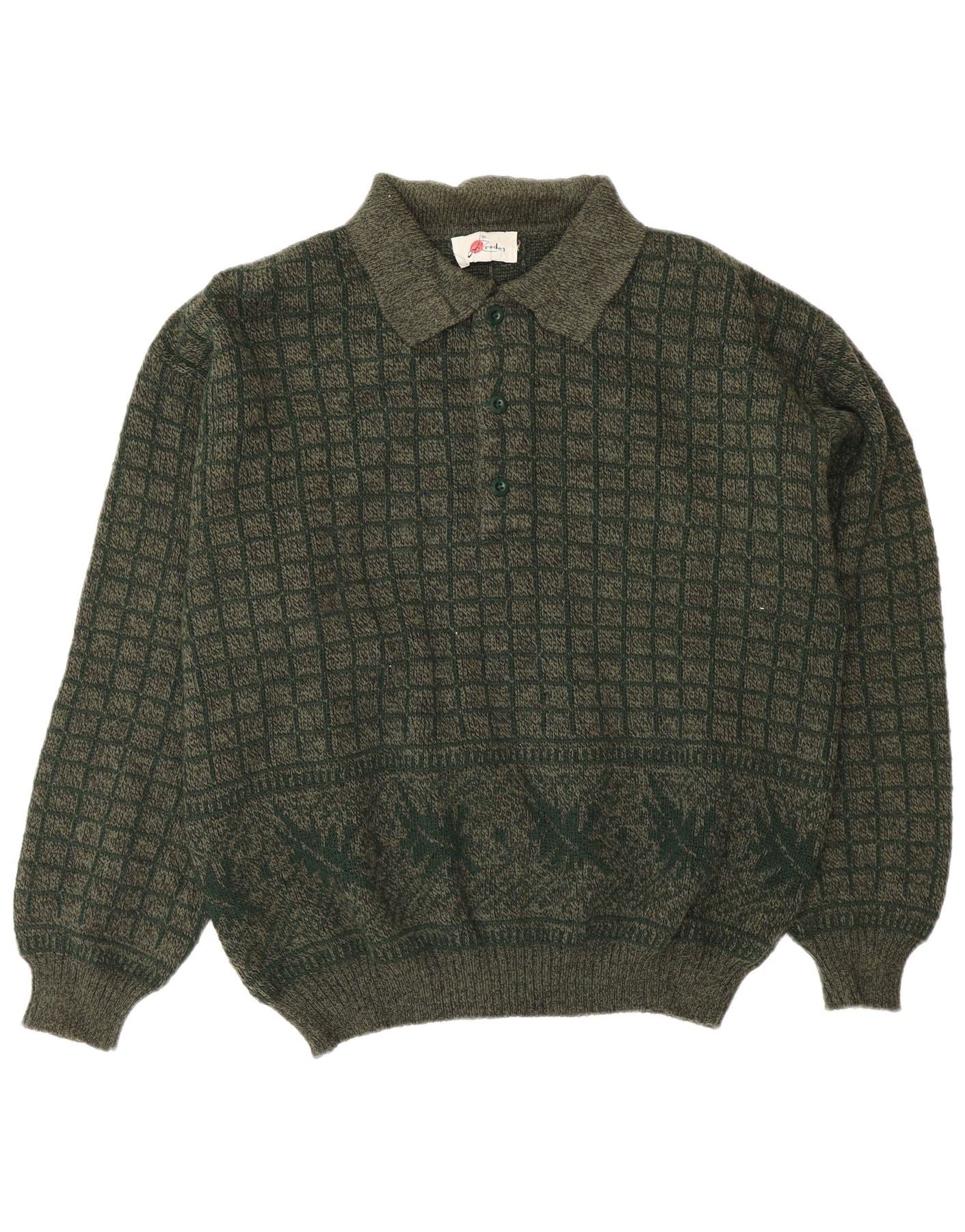- Descrição da IA: Este suéter masculino Proden com gola polo é feito de uma mistura de malha macia de acrílico, lã e lã de alpaca. Possui um padrão geométrico verde distinto por toda parte. O decote com gola e a carcela com botões oferecem um visual clássico. Mangas compridas e ajuste regular garantem um uso confortável. Detalhes sutis na bainha acrescentam interesse visual. Este jumper combina calor com estilo atemporal.