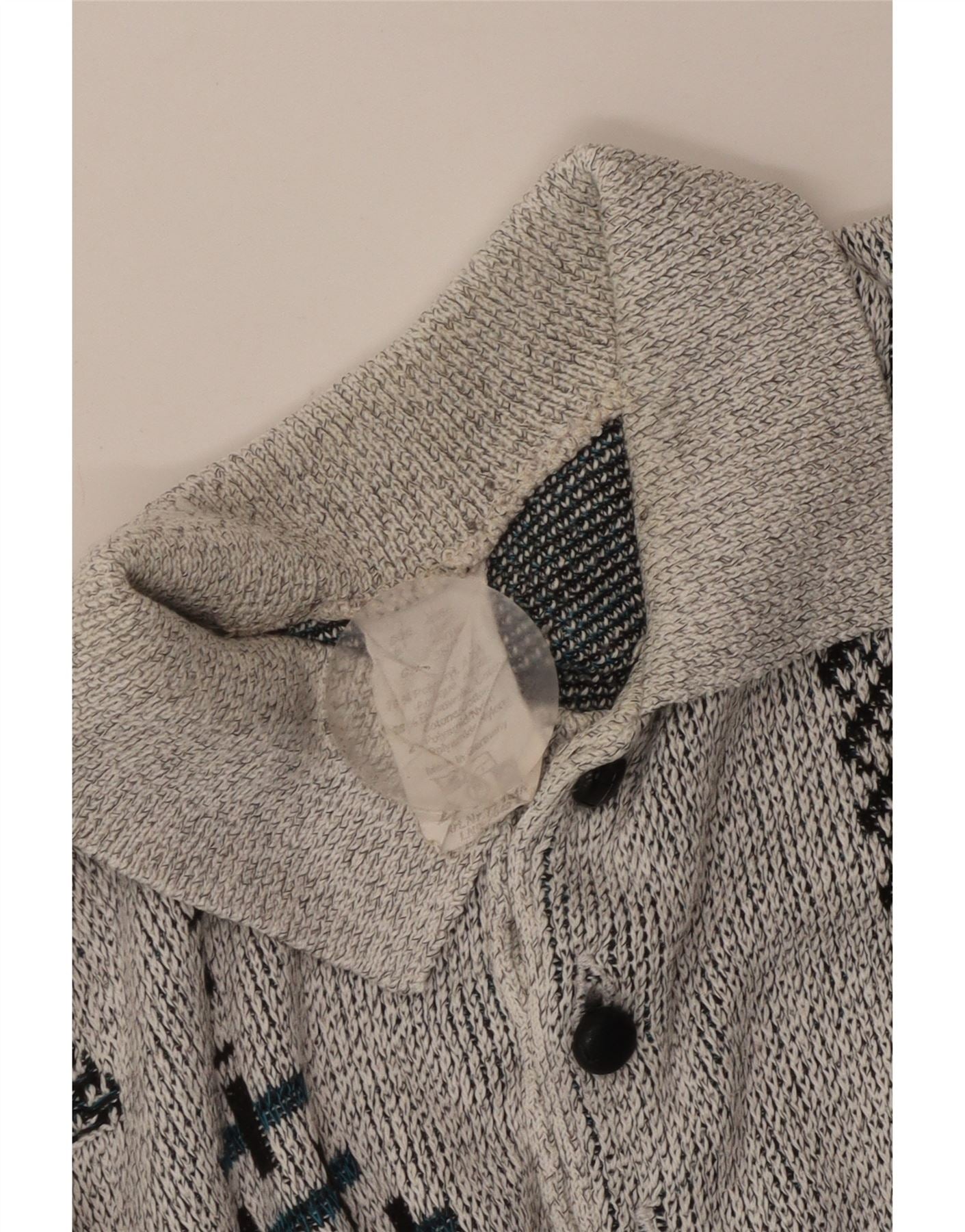 Suéter masculino vintage com gola polo UK 38/40 cinza médio geométrico