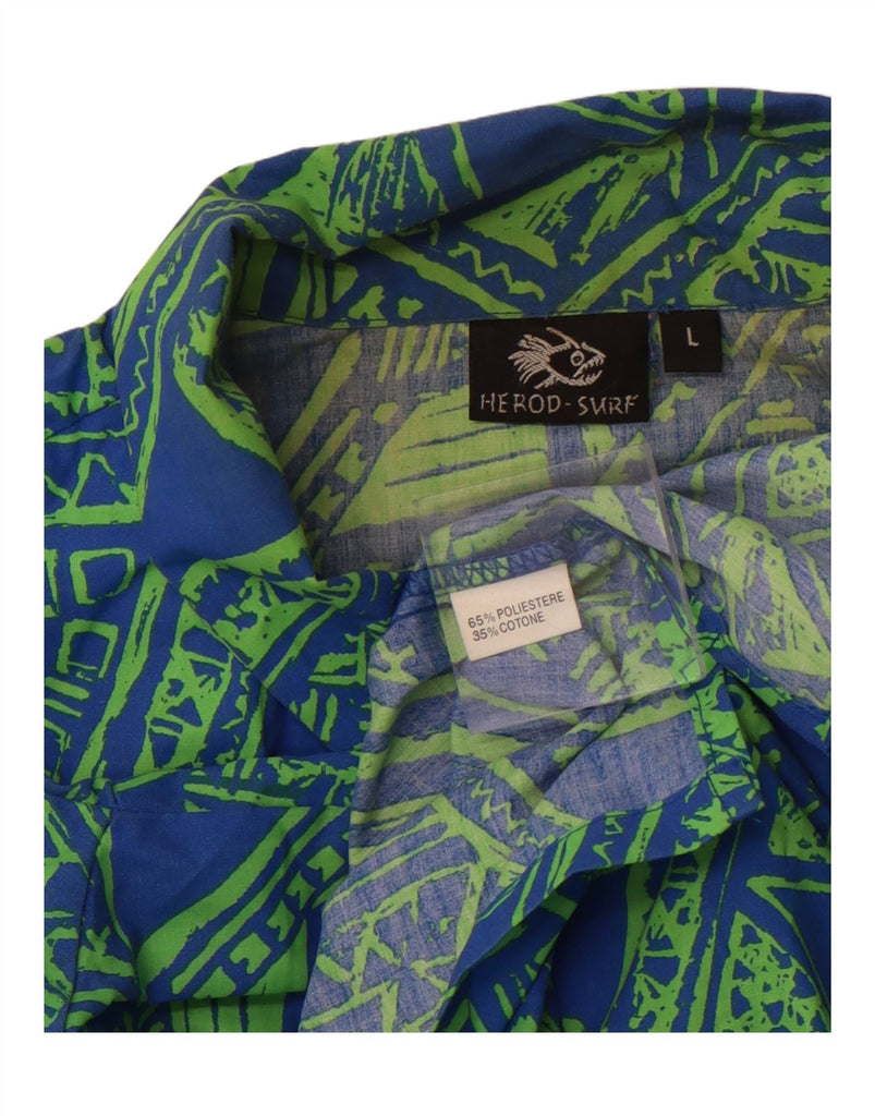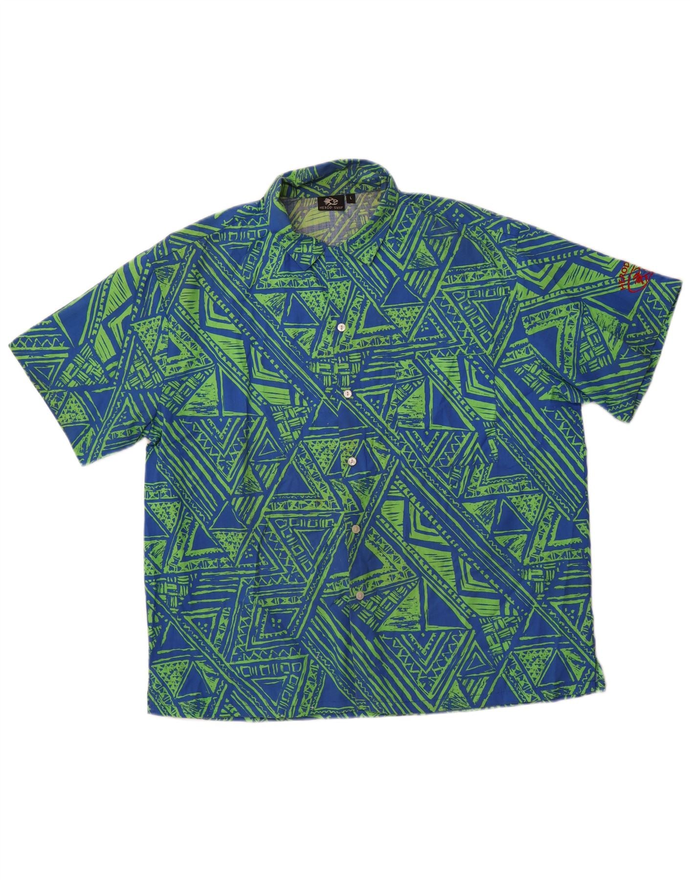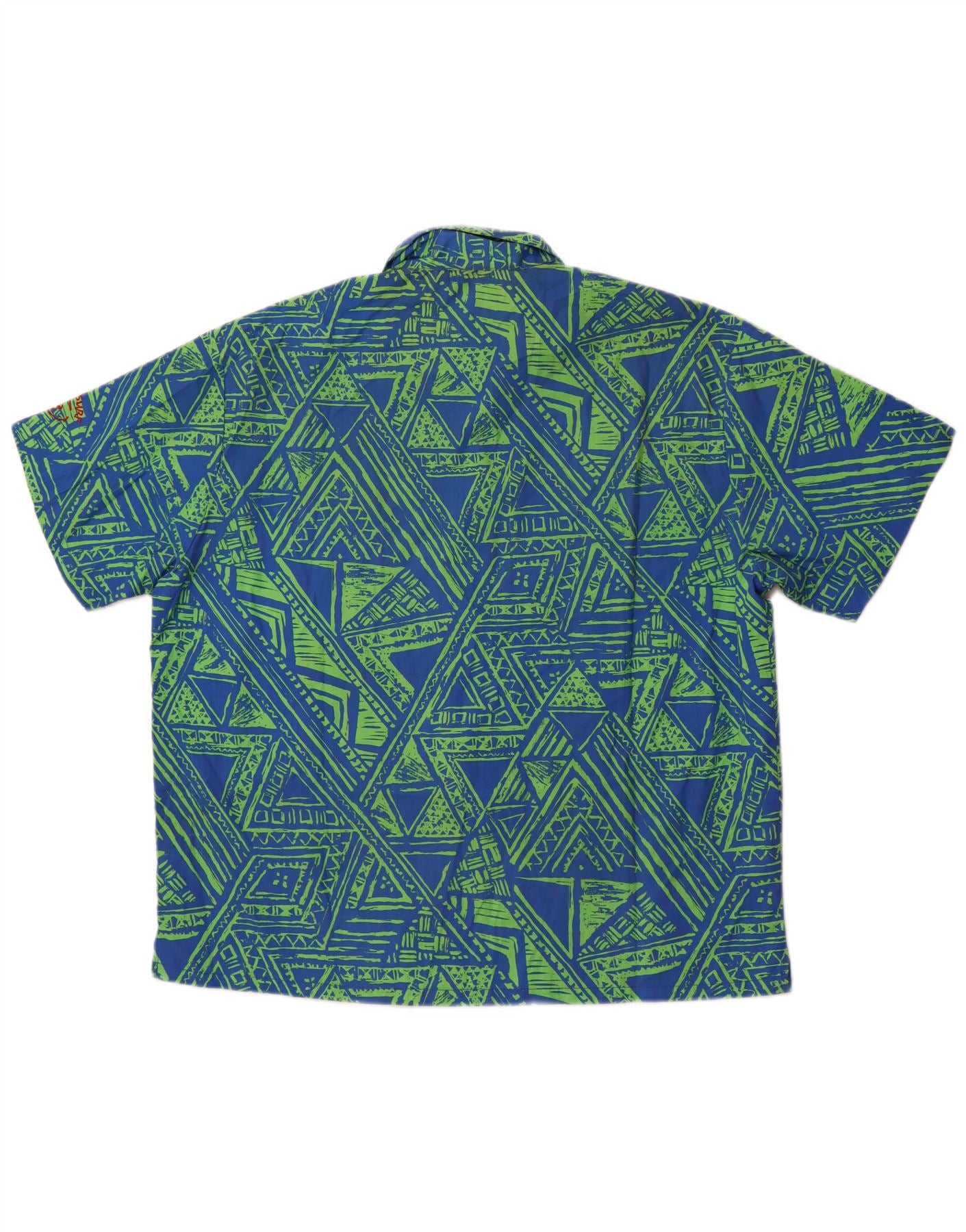 Camisa masculina VINTAGE de manga curta grande poliéster geométrico azul