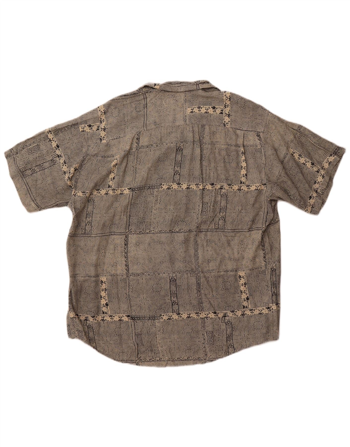 Camisa masculina vintage de manga curta grande cinza Paisley