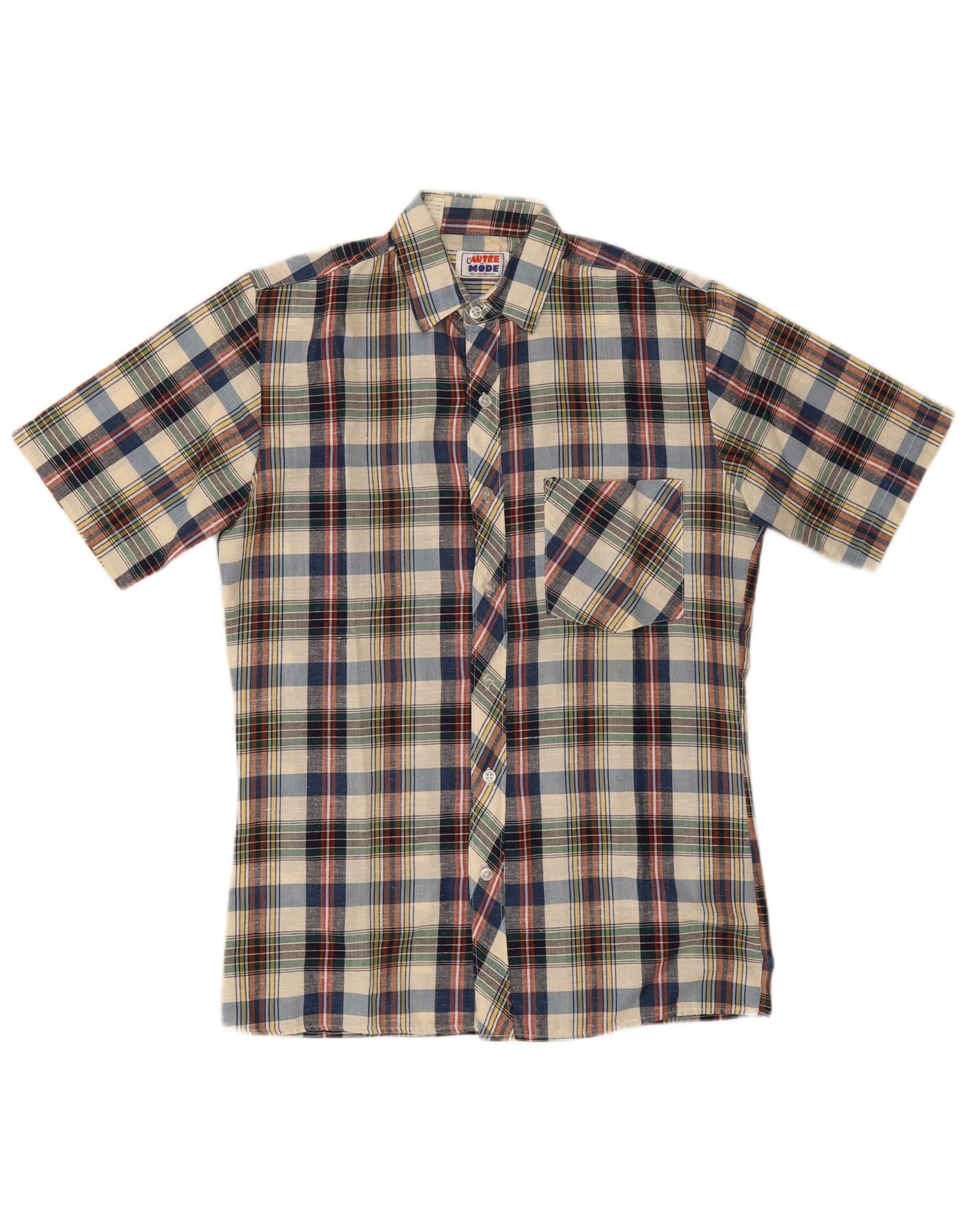 Camisa masculina vintage de manga curta média xadrez multicolorida