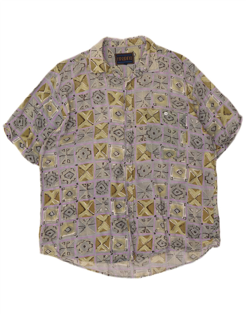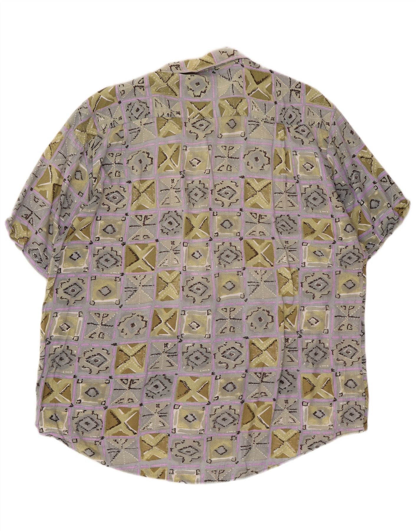 Camisa masculina de manga curta VINTAGE XL viscose geométrica multicolorida